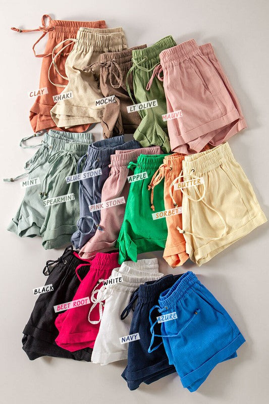 This colorful linen short is the perfect go to summer short! It features an elastic waist with string tie closure, cuffed hem and slant pockets. They will keep you cool and comfy in all your adventures!
