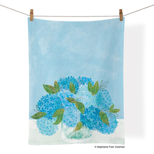 Blue Hydrangeas Cotton Tea Towel