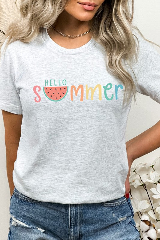 Hello Summer Pastel Rainbow Watermelon Graphic Tee