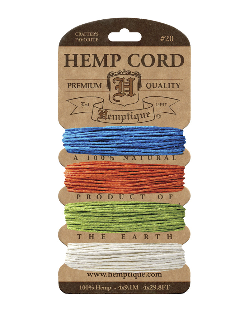 Each card comes with 4 coordinated colors of hemp cord that are approximately 29 feet each. These Hemp Cord Cards are perfect for any small to medium crafting project.
