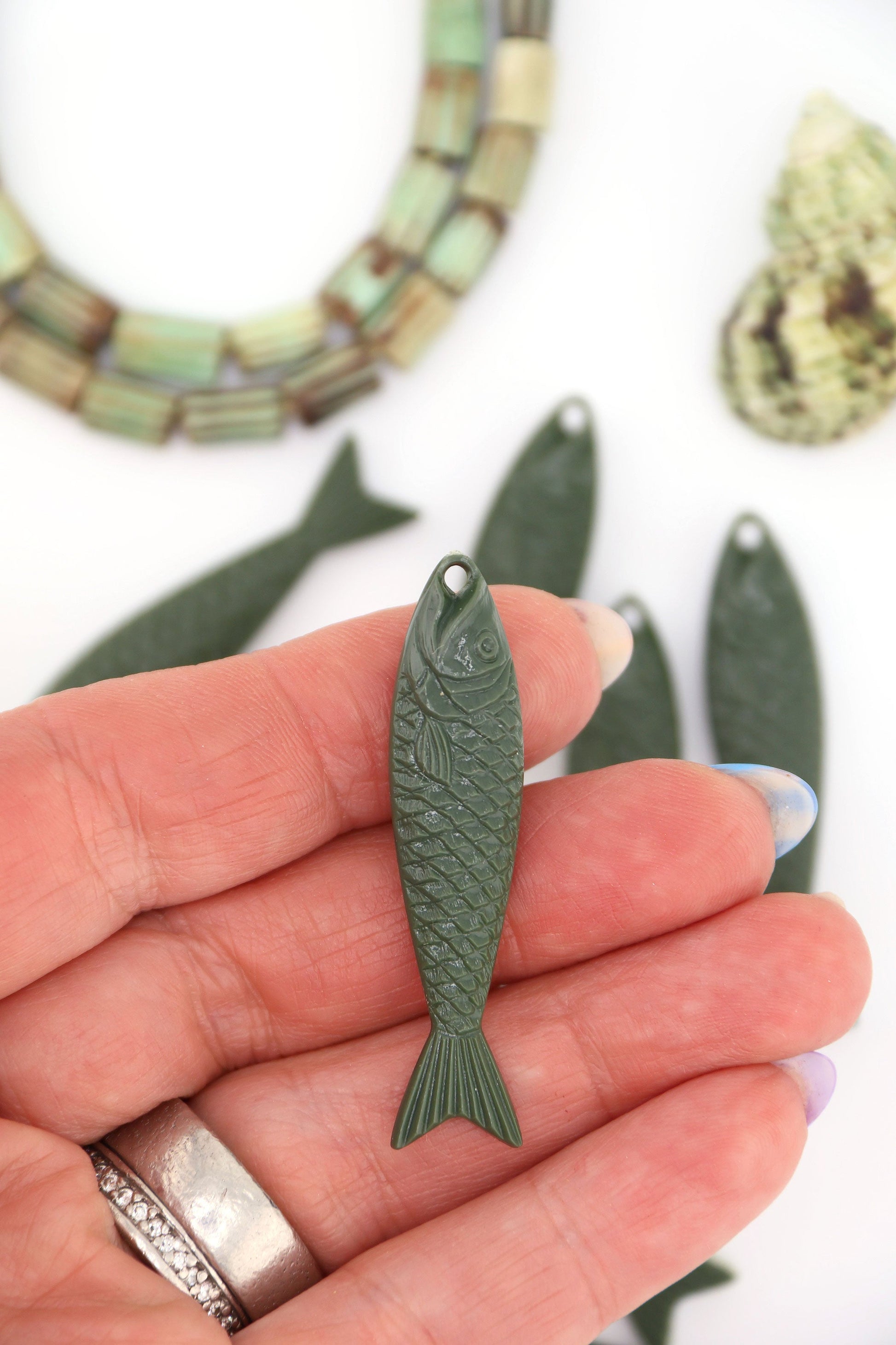 If the Fisherman aesthetic is your vibe, you'll love these earthy, army green fish charms. The details on these are beautifully intricate, and the color is so rich. 48mm of sea creature magic will add such a playful oceanic vibe to your jewelry creations. These are wonderfully lightweight and high quality.