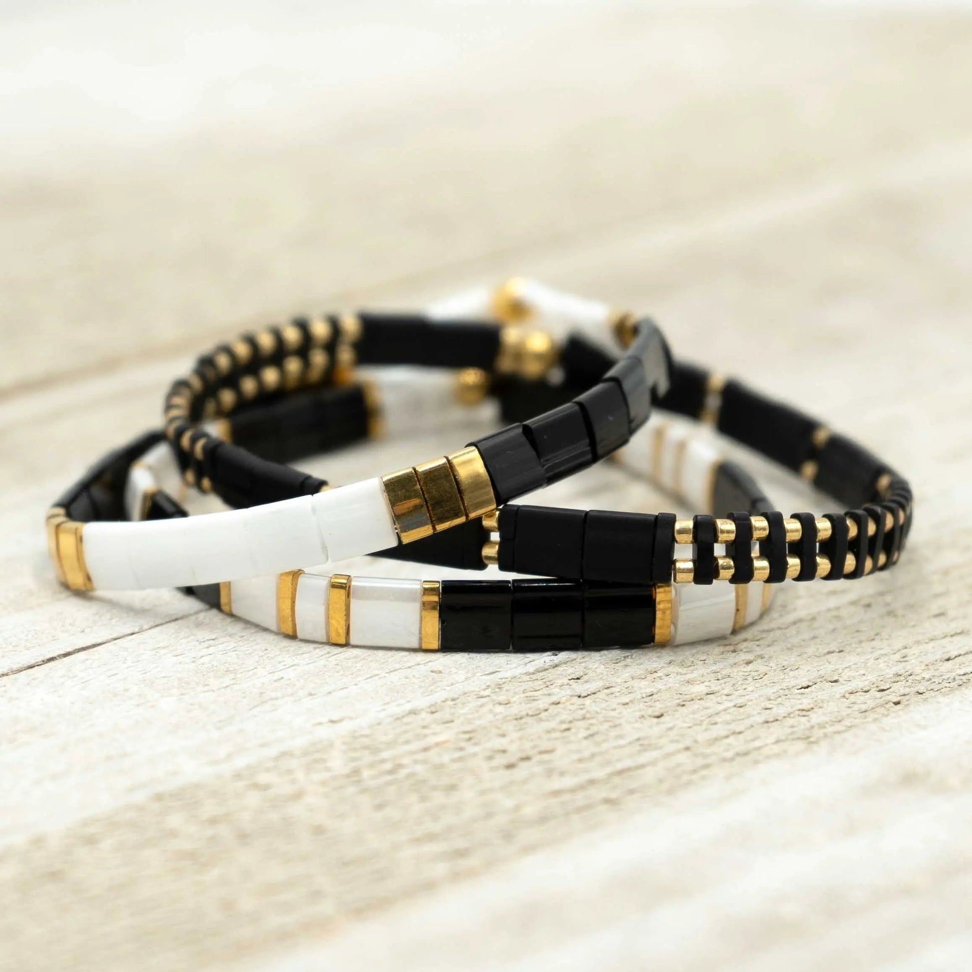 Tila Bracelets aren't your 'typical' tile bracelets. We make the strongest, beaded stretchy bracelets you're going to find! Not only that, but they add a pop of personality to whatever you wear!Our bracelets are waterproof, durable, comfortable, light weight, perfect for layering, and make fantastic gifts! Finding the right size is easy because we've spent years nailing down the PERFECT size and fit for our tila bracelets.PERFECT SIZE PROMISEFriends, we are P.I.C.K.Y. on how your bracelet fits!! If you'll follow these instructions for sizing, you'll get the perfect bracelet size every time! If you’re giving the bracelet as a gift, use option #2.OPTION 1 - Get a piece of string and wrap it around your wrist. Lay the string out by a ruler to figure out what length your wrist is. Once you have that information, you will add .25 to the measurement. For instance: if your wrist measures 7 inches, the size you would want is 7.25OPTION 2 - Use your t-shirt size! Pretty simple, right?! If you wear an extra small t-shirt, you'll get the XS bracelet! (Best to use if you’re giving bracelets as a gift)MENS SIZES – Use #2 for measuring, but size up. For instance, if you wear a 1X shirt, you will wear a 2X bracelet.PLEASE NOTE: 4XL and 5XL sizes are available on most bracelets, but not all bracelets.FAQ: How do you know if your bracelet is the perfect fit? Your bracelet should stay in one place on your wrist, but be able to easily twist around from left to right without much effort. The bracelet should barely move up and down your arm, and may not even move at all. Your bracelet should feel contact with your wrist, but shouldn’t hang either. The bracelet should also lie flat to your wrist.Share