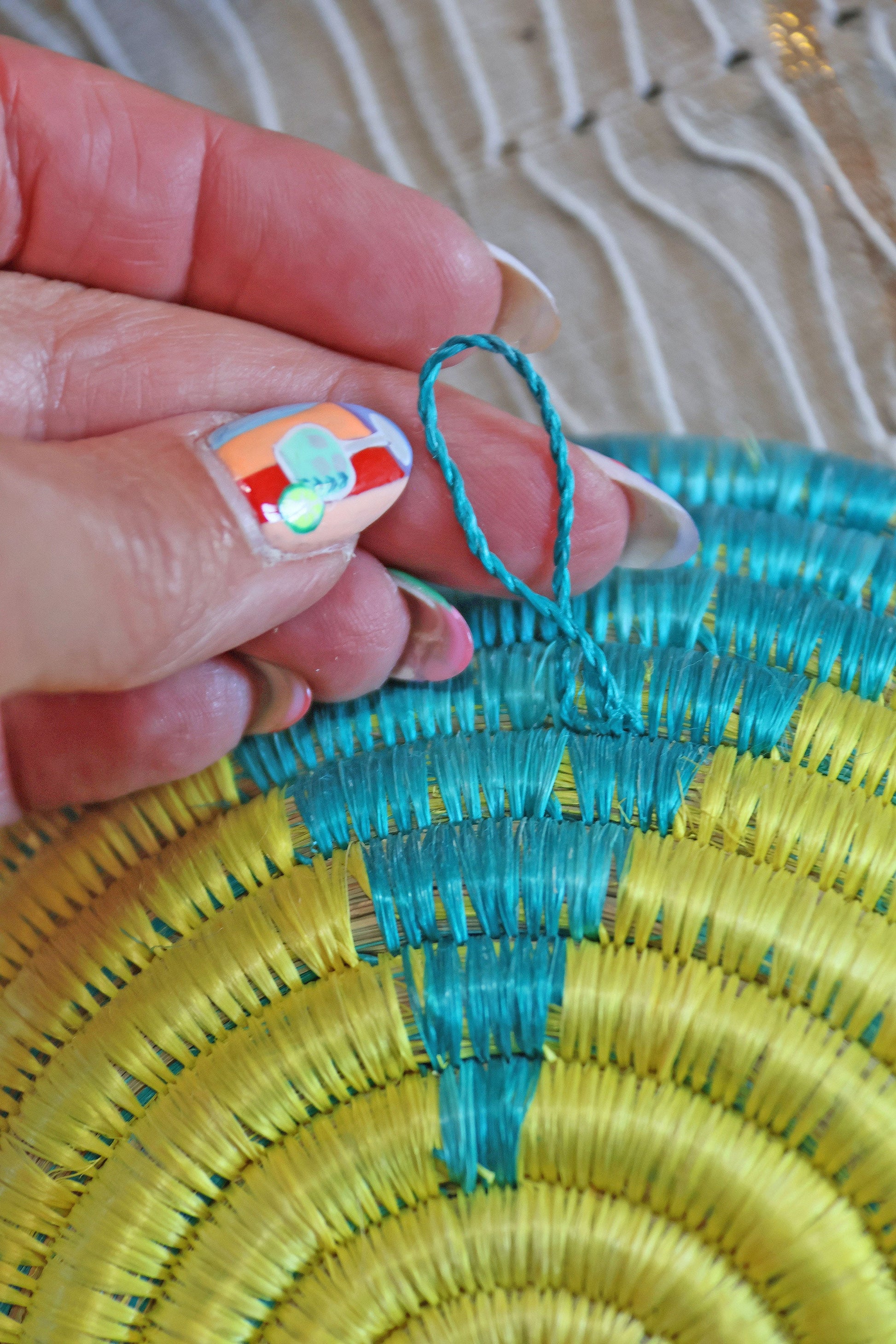 Add some pizzazz to a boring wall or tabletop with this curated and cohesive collection of bright, multi-colored African baskets. This colorful set makes it easy to create a global boho home. Handcrafted in Rwanda by women, from Sisal wrapped around native grasses, these vibrant baskets are not only beautiful, but widely functional too.