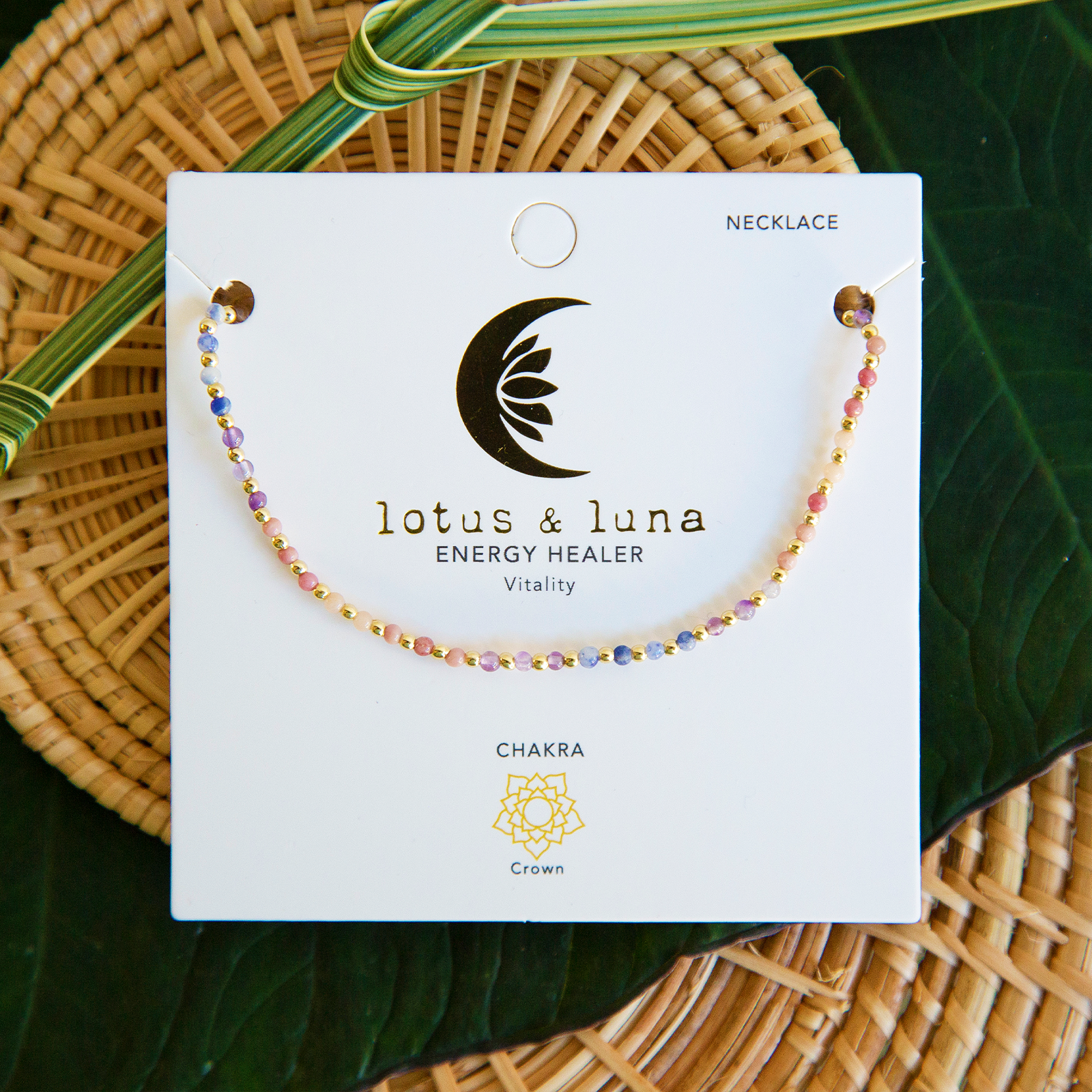 Perfect for gifting, each jewelry piece comes packaged with a description of its stones and their healing properties.