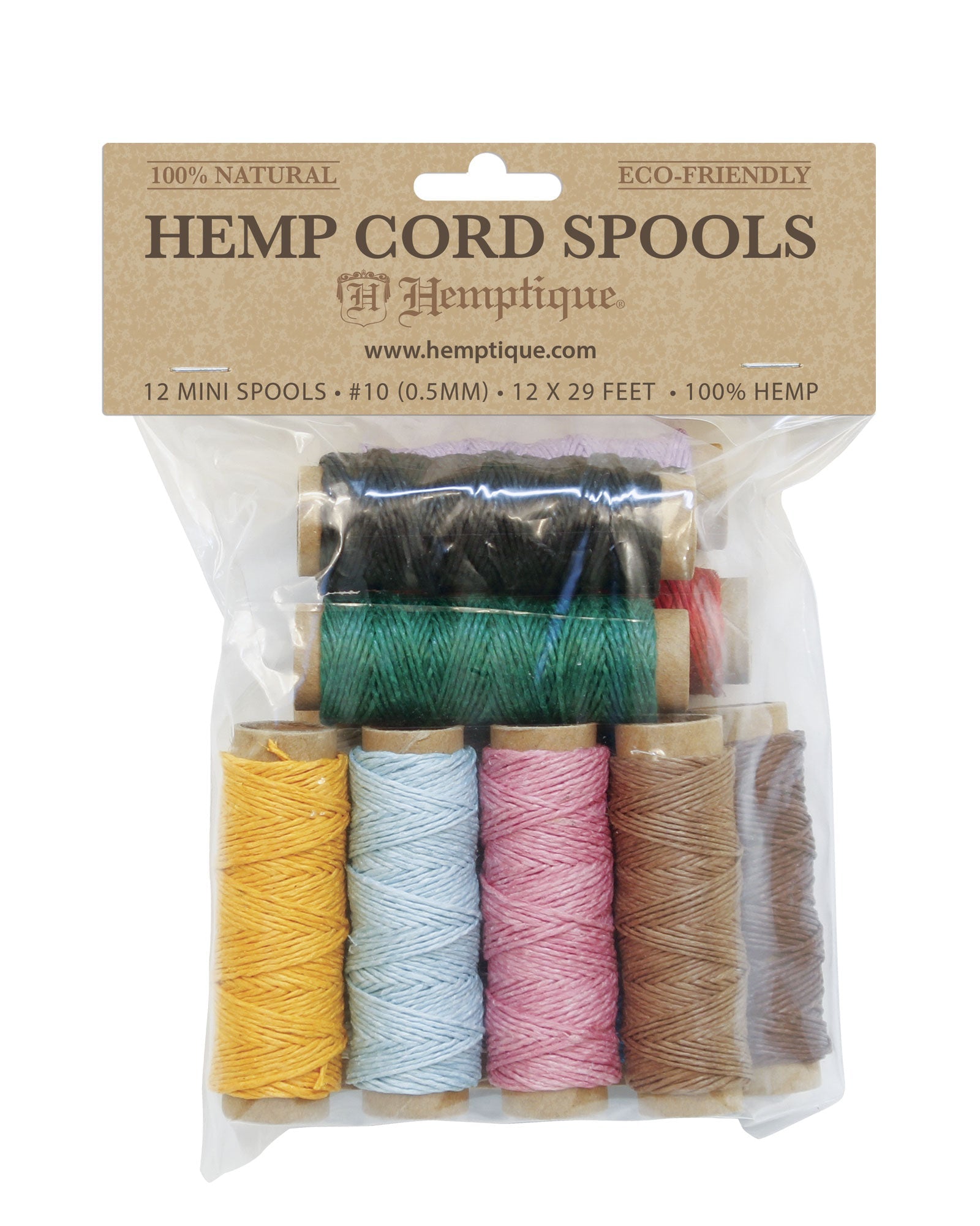 Hemptique's packaged 12 Mini Spool Bag is the perfect amount of Hemp Cord for smaller projects. Multi-Colors: pink, purple, yellow-orange, light blue, brown, earthy, turquoise, red, white, black, dark brown, and green.