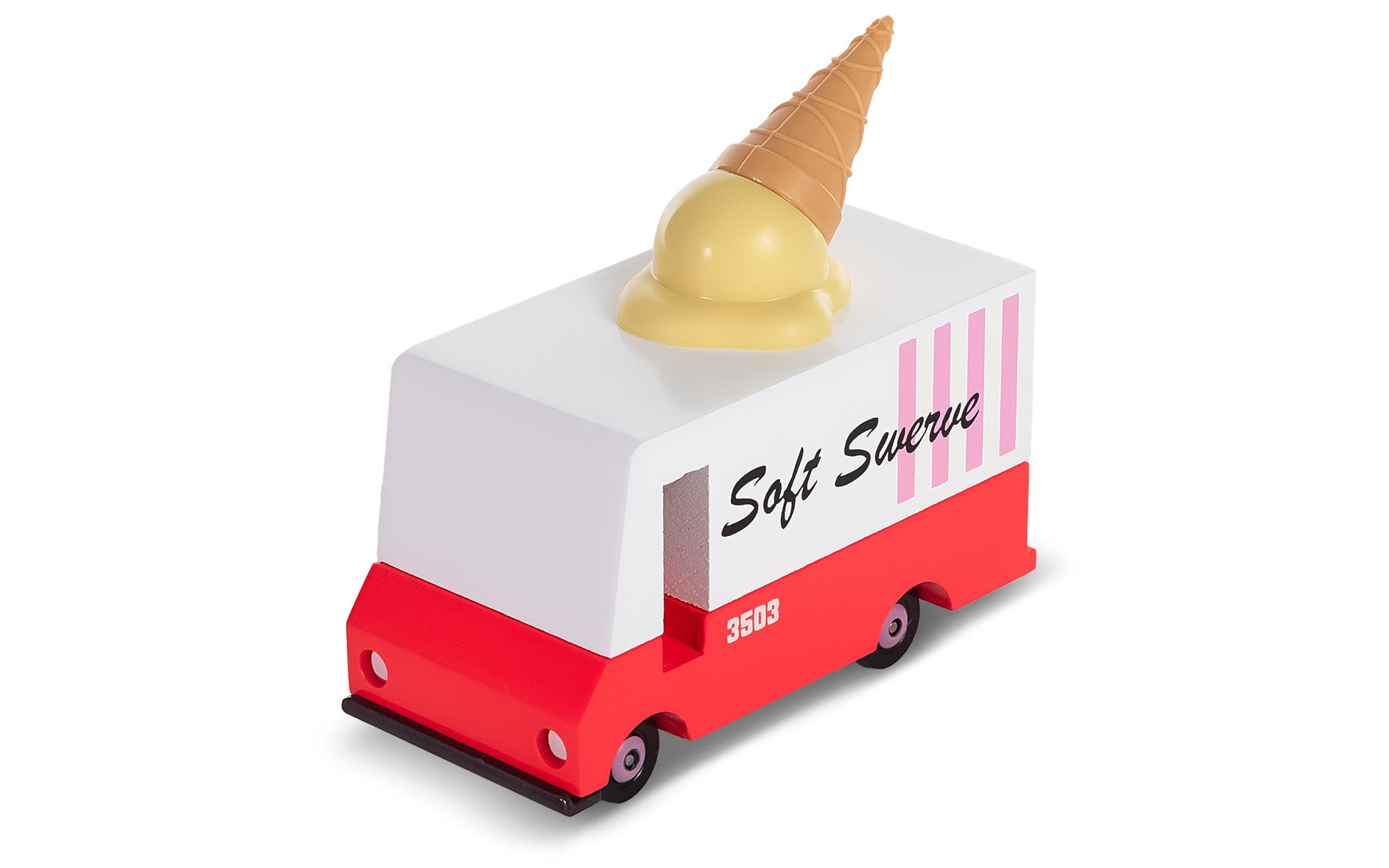 Soft-serving up good looks. As far as a symbol of simpler times and a carefree way to stuff sugar and calories in your childhood, you can’t beat the ice cream truck. We popped a melty top, added a bright pink base, sprinkled a pun, and voila! Iconic toy made. No ice cream truck jingle – you’re welcome.