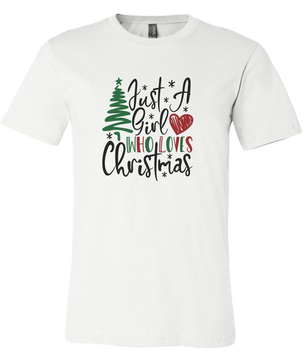 Who's Just A Girl Who Loves Christmas? Why, it's you, of course! Make sure you shop these Christmas tees early and you'll be able to wear them to all your holiday festivities!