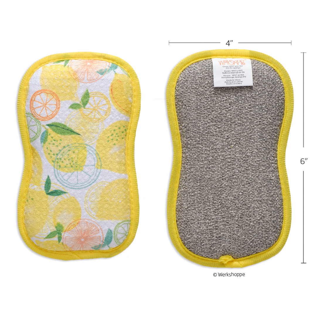 A set of 4 hard working microfiber scrubbies consists of 2 coordinating designs - an abundance of lemon and citrus slices and a brightly colored plaid. These are perfect kitchen clean up helpers.