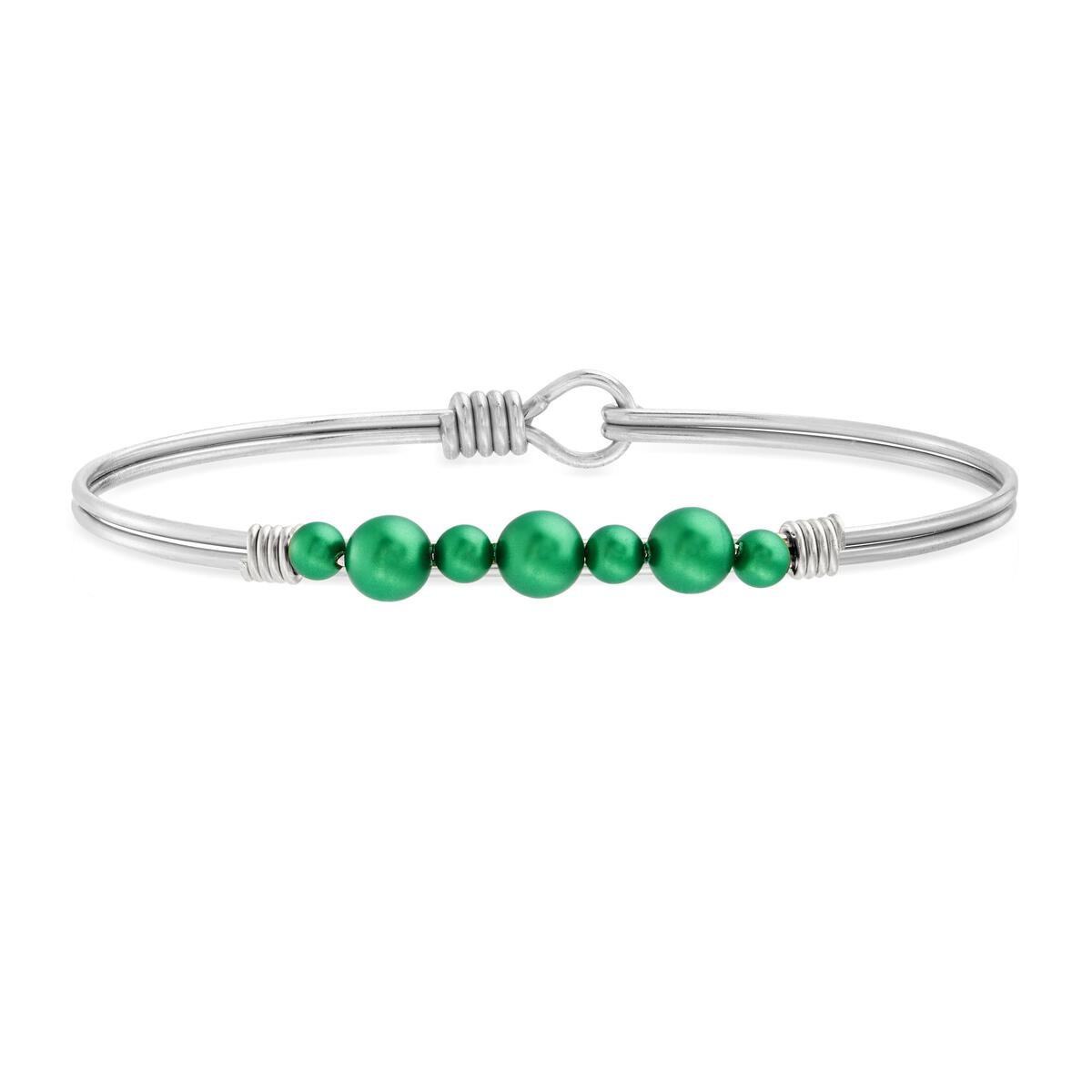 Graduated Crystal Pearl Bangle Bracelet (Emerald)