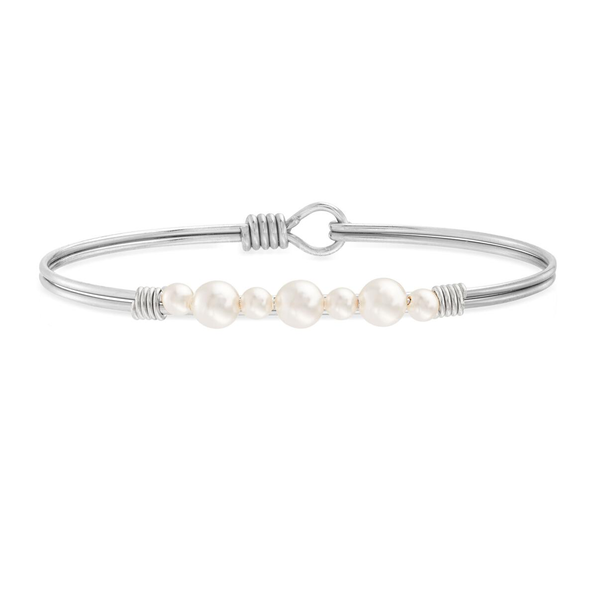 Graduated Crystal Pearl Bangle Bracelet (White)