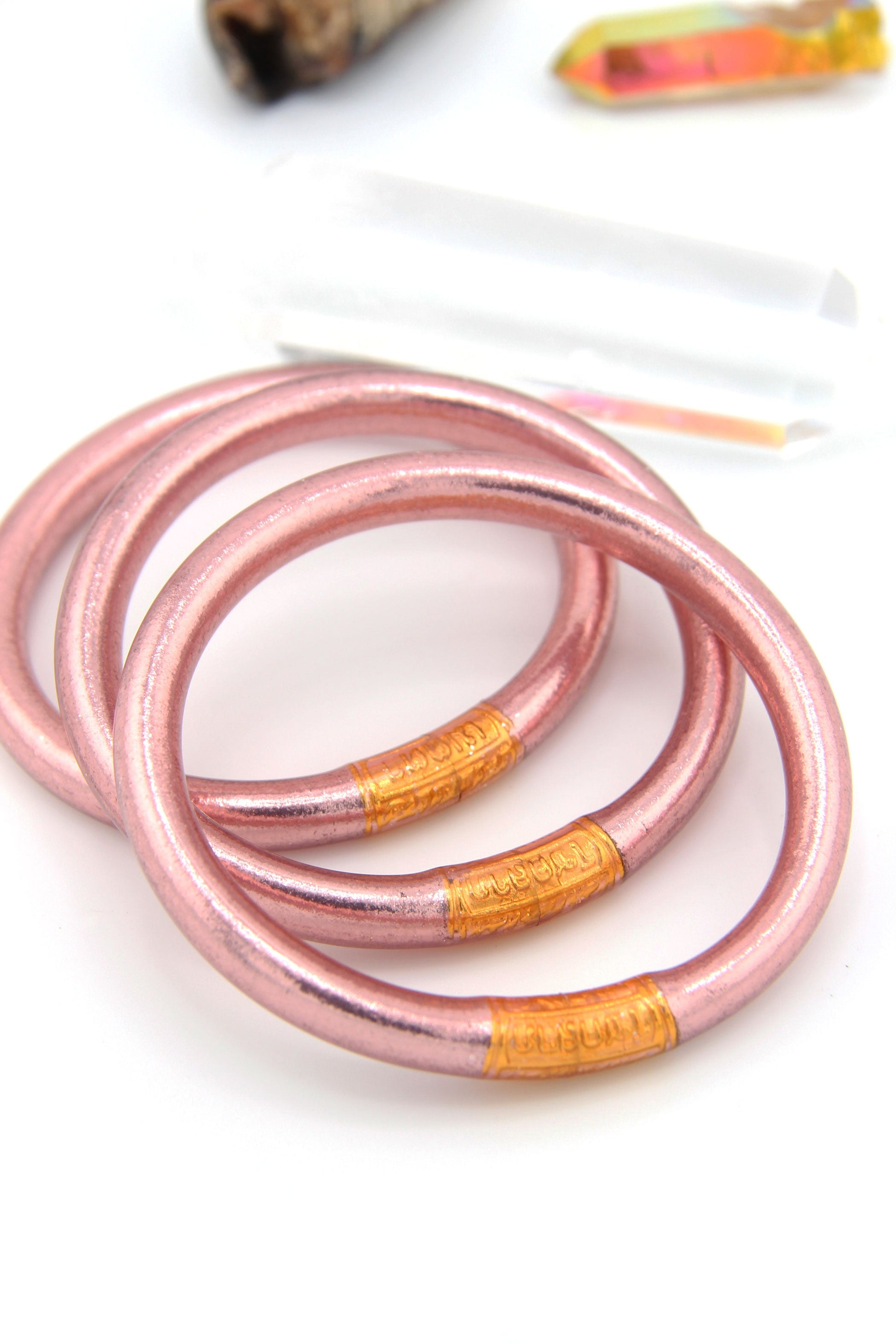 • As you roll on these lucky bangles, set an intention for your day, and let their shimmering color remind you of your spiritual journey whenever they catch your eye.