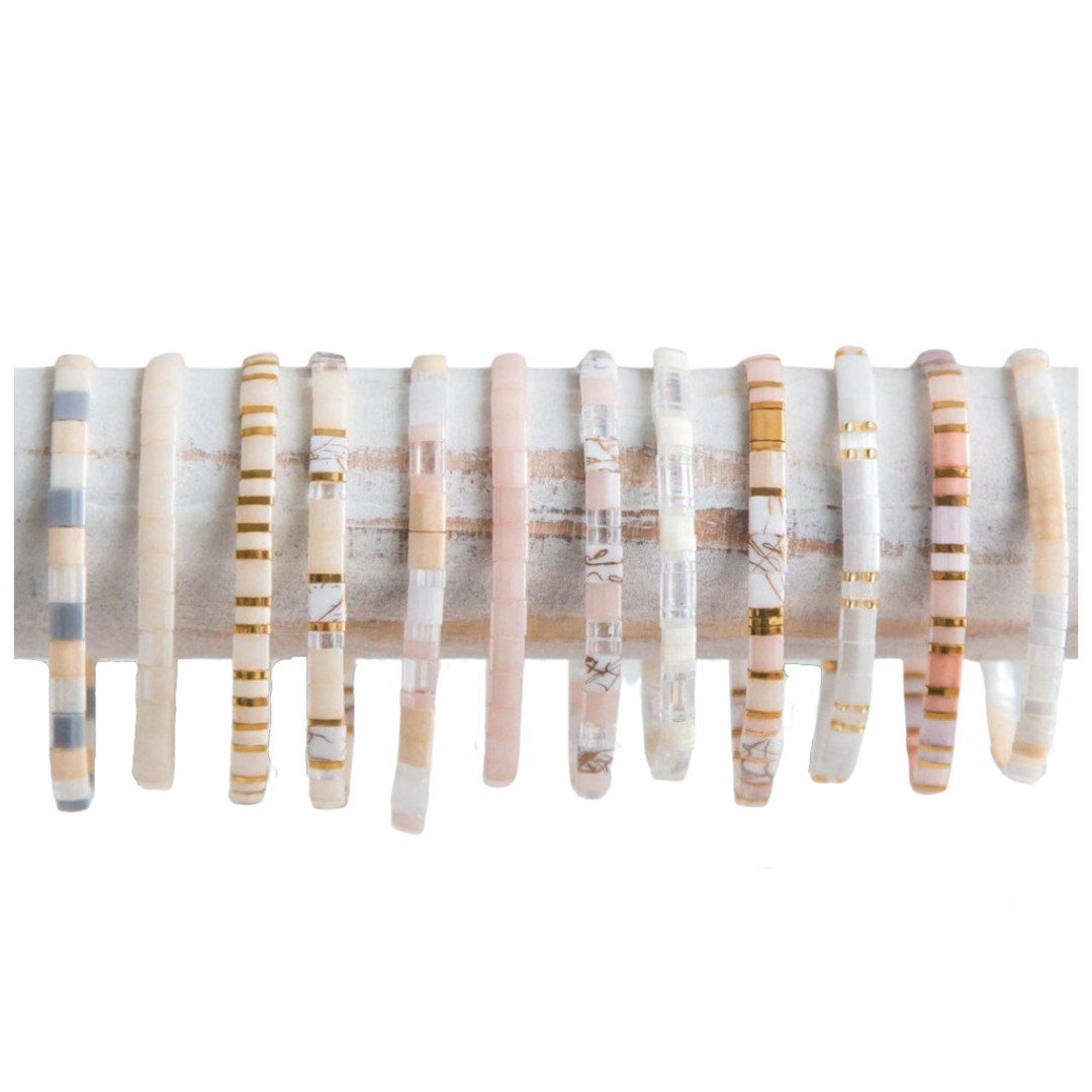 Tila Bracelets by Mack & Rex are NOT your typical beaded bracelets! We proudly back up our bracelets with a quality guarantee (yes, on stretchy bracelets!) and know that you will love them! They are made with an expensive crystal cord elastic, as well as glass tile beads from the top manufacture in Japan. In addition to being beautiful, our stretchy bead bracelets are:
