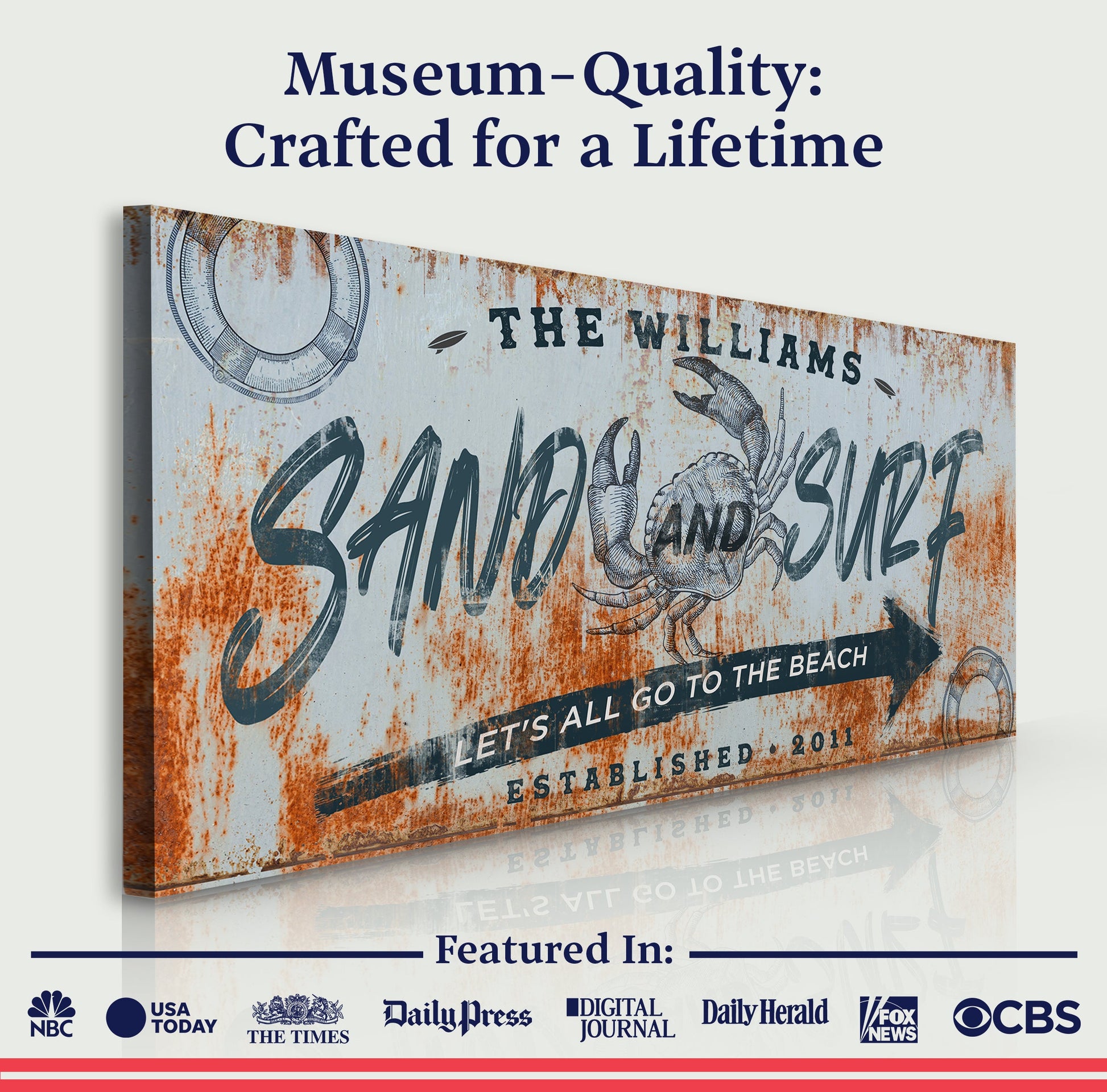 When you personalize it as your own, you'll fall in love with the sand and surf wall art. With this sand and surf sign, you can customize your beach house and make it uniquely yours. The sand and surf canvas print is the perfect addition to any beach house, home, or office.