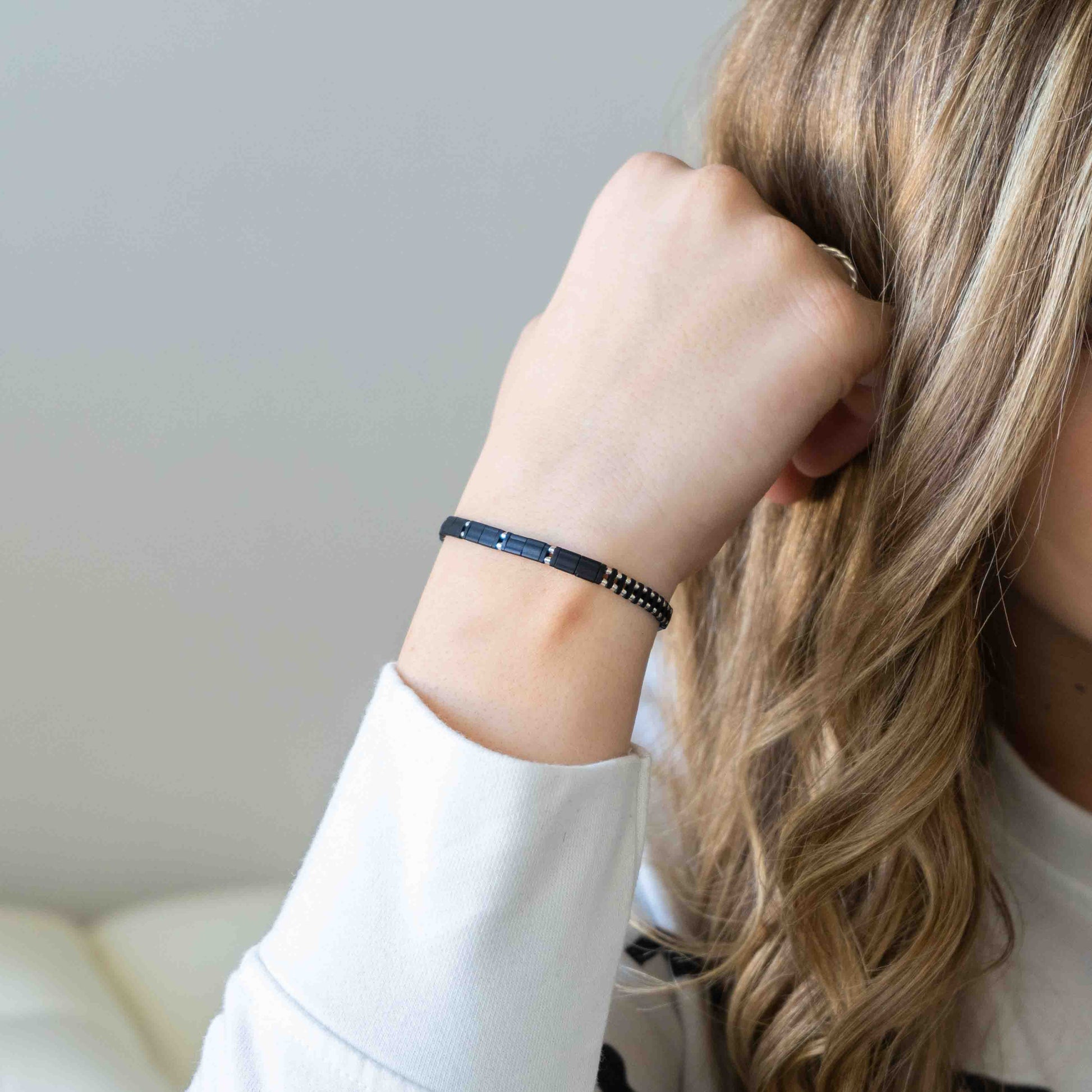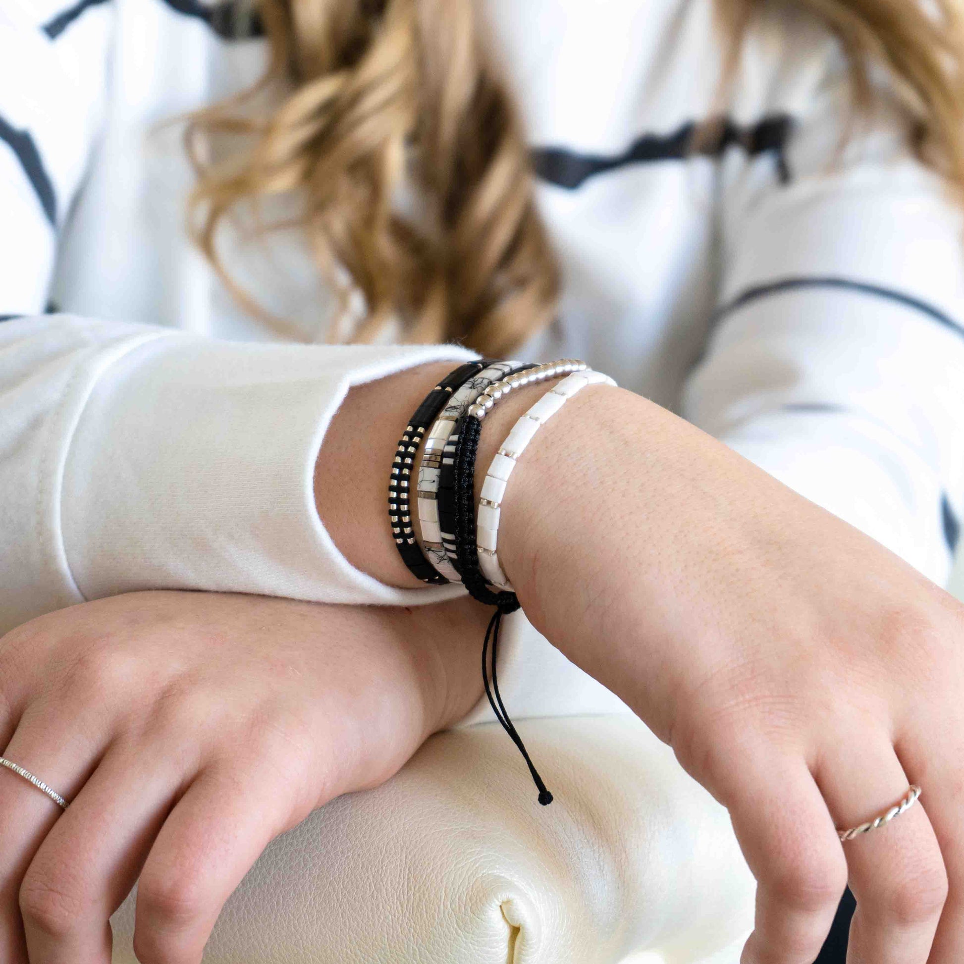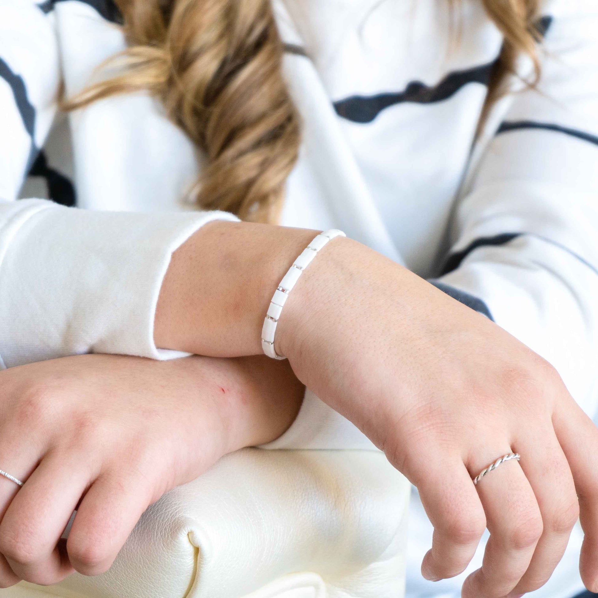 Anyone who is active, anyone who likes to layer bracelets, or teens are obsessed with our bracelets. We find that moms, teachers, medical & dental professionals, athletes and fitness instructors are drawn towards our bracelets because of their durability and comfortable fit. Because our tila bracelets lie flat to your wrist, they have a slim chance of getting caught on something or getting in the way. Truly these bracelets are made for everyone, but it’s especially important for you to know that they work for these active lifestyles, because that’s not common in the bracelet industry.