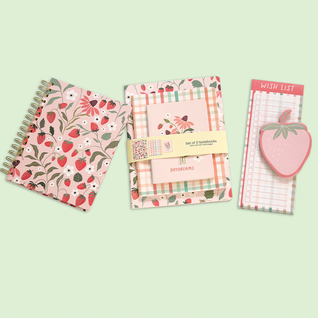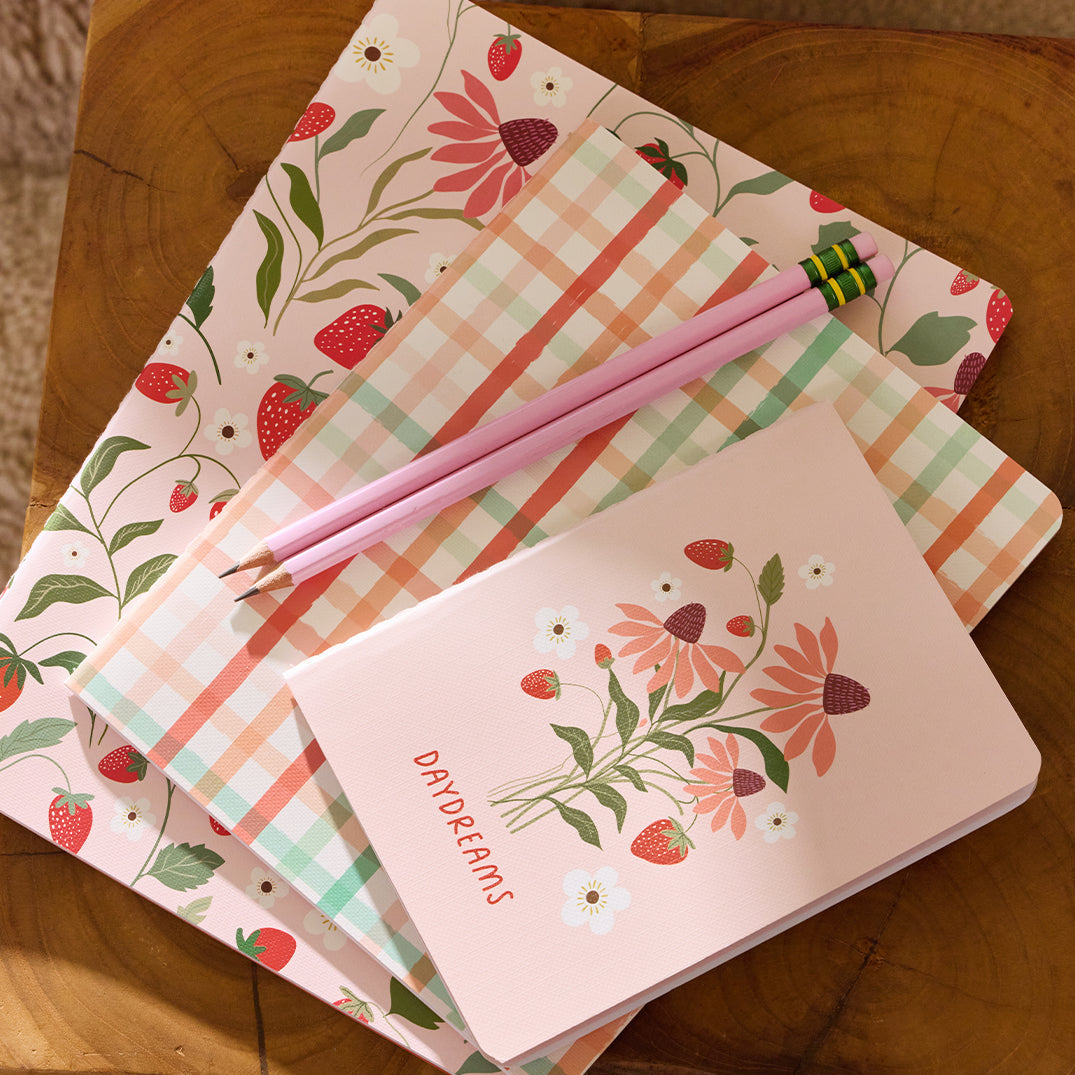 Strawberry Daydreams Stitched Notebook Set