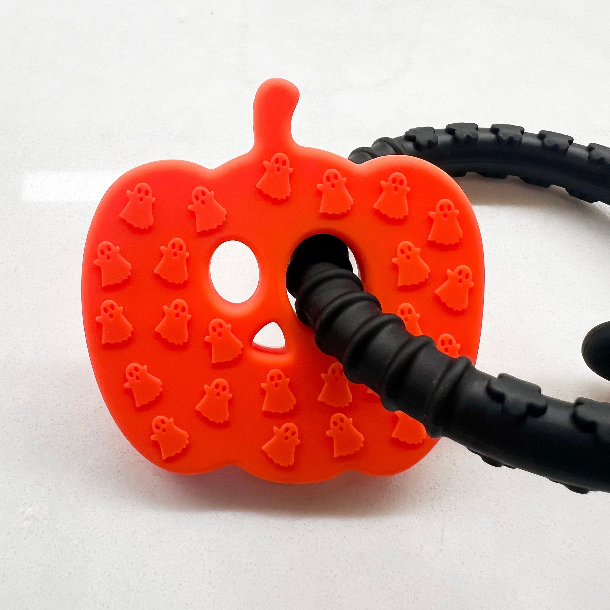 Say hello to our spooky teether - the perfect sidekick for your little one's teething journey this Halloween season! Made from 100% food-grade silicone, it's safe and gentle on delicate gums. The textured pumpkin and skull design offers varied sensory experiences that support your baby's development while soothing teething discomfort. Conveniently dishwasher, freezer, and microwave safe, it’s easy to clean and provides cool relief for those sore gums. Its compact size and lightweight design make it perfect for tiny hands to grasp, and it comes with a reusable pouch for on-the-go convenience. Give your baby the spooky comfort they deserve with our Spooky Teether—a fun blend of relief and sensory stimulation!