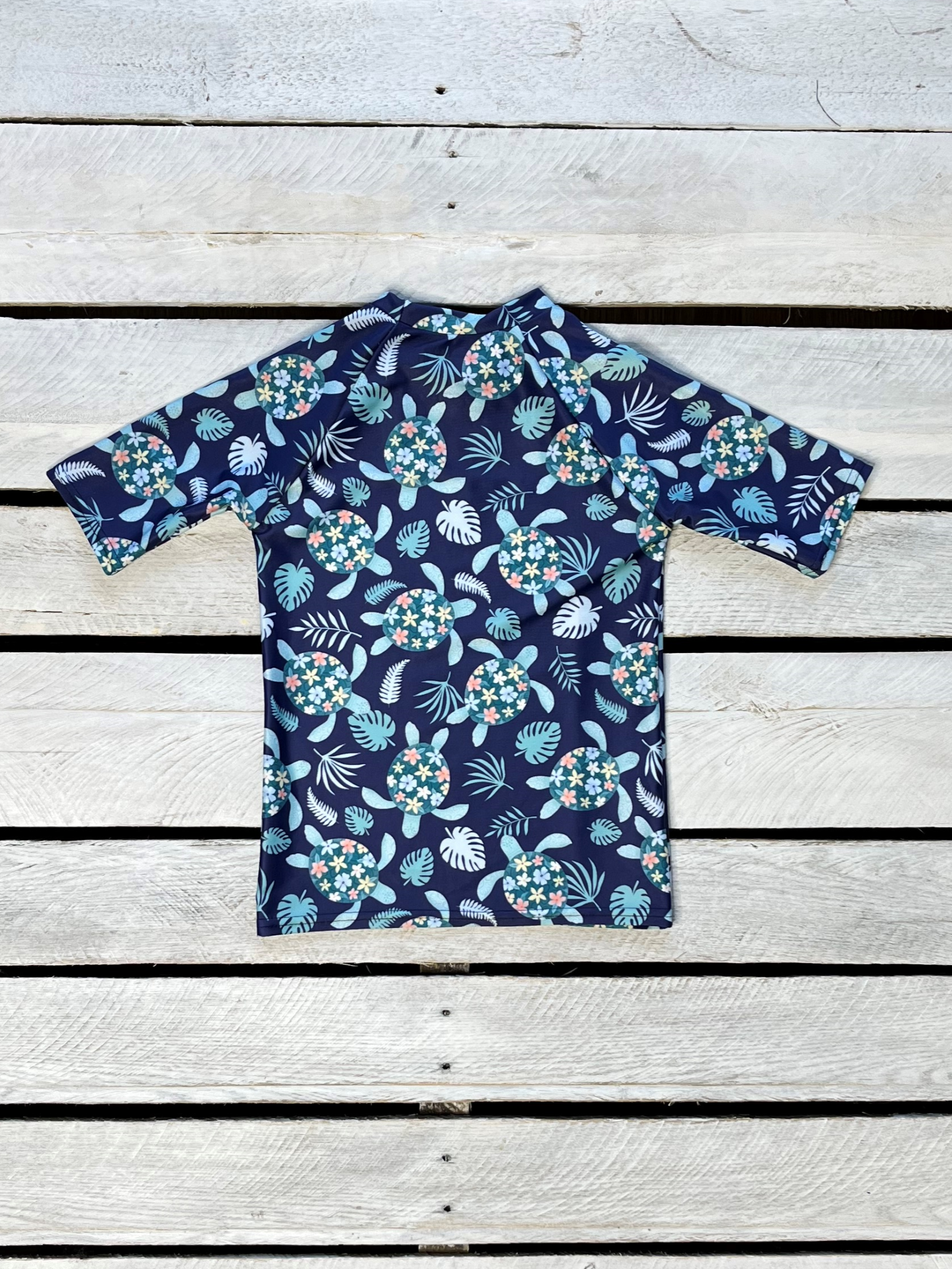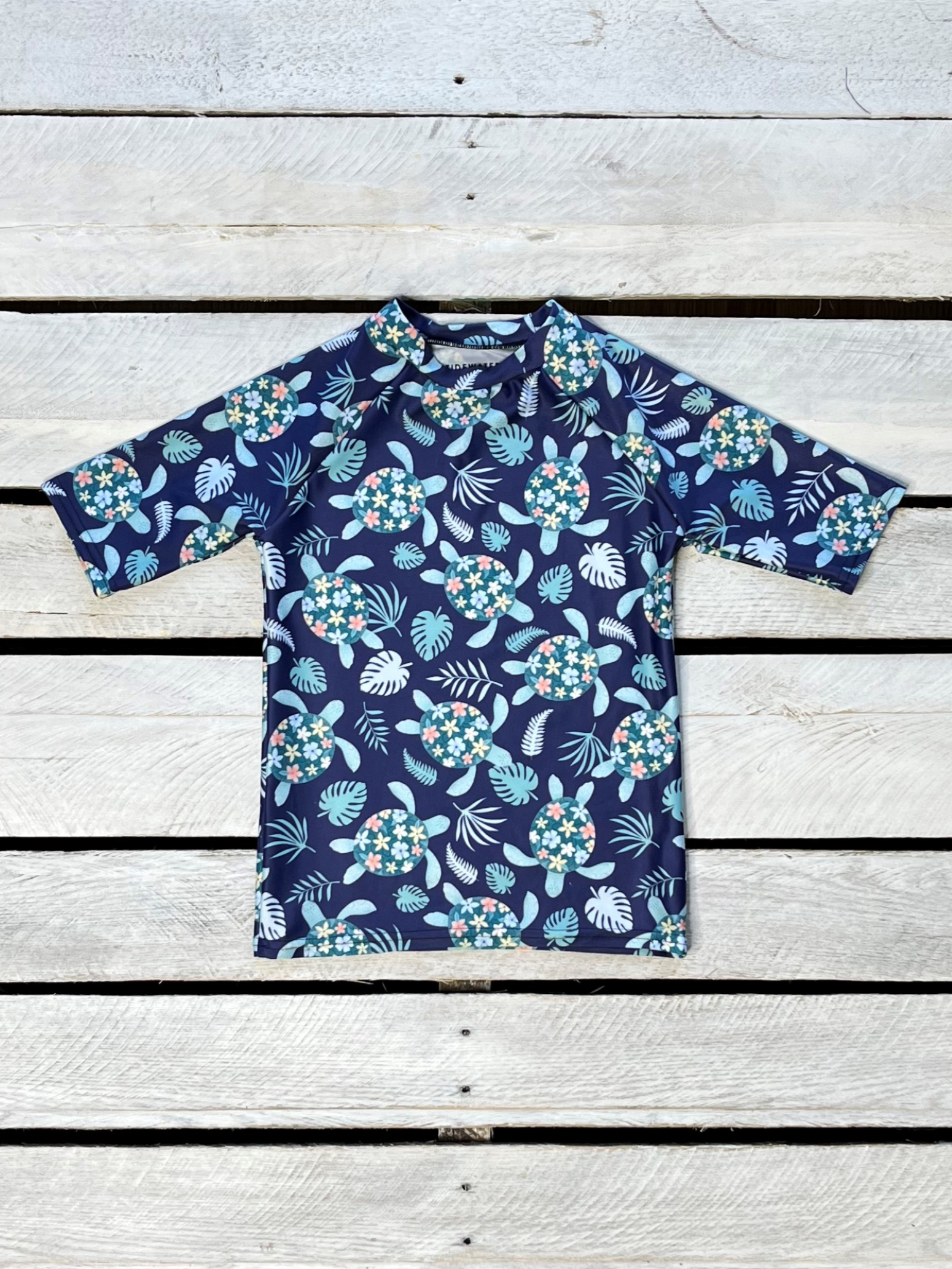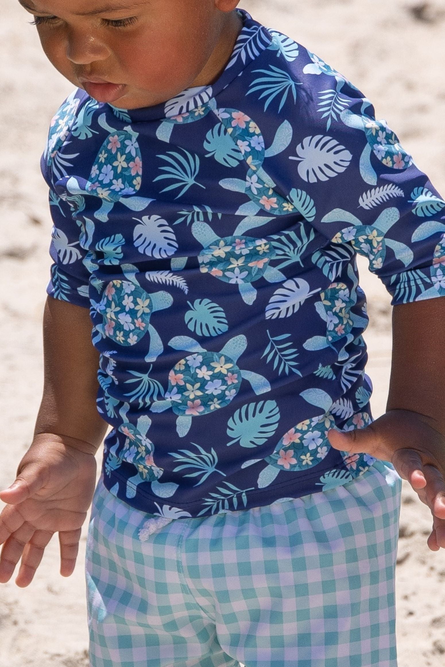 Your little one will be as cute as can be in this short sleeve sun shirt, made of soft, UPF 50+ fabric. Made in the USA.