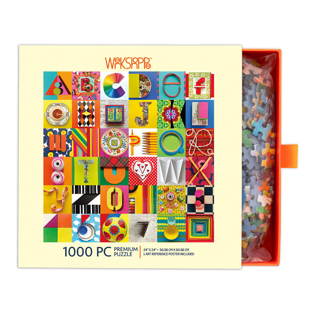 Dive into a world of eclectic charm with this 1000-piece square puzzle, showcasing an imaginative collage of found objects that create letters and numbers. This digital work of art is crafted to capture its intricate and novel details.