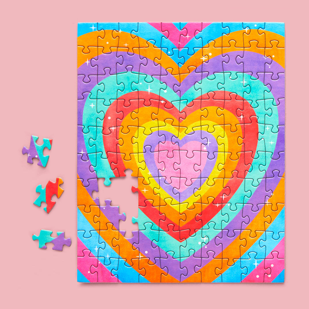 Bold and bright, our Velvet Heart 100 piece puzzle entertains the young and old. So pretty, you'll want to hang it on the wall after you complete it!