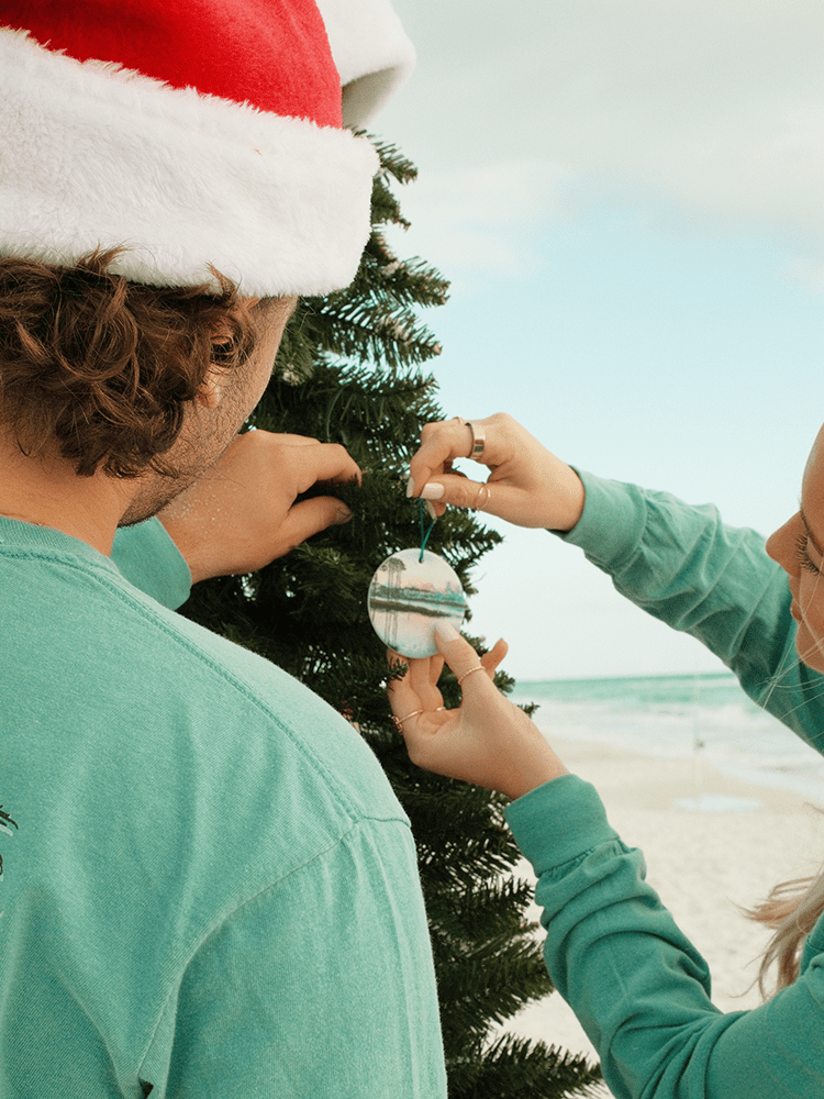 Add a touch of 30A charm to your holiday decor with our stunning ceramic Christmas ornament! Featuring a watercolor illustration of Western Lake at sunset, this keepsake brings the beauty of 30A to your tree. Perfect for gifting or celebrating coastal holiday vibes