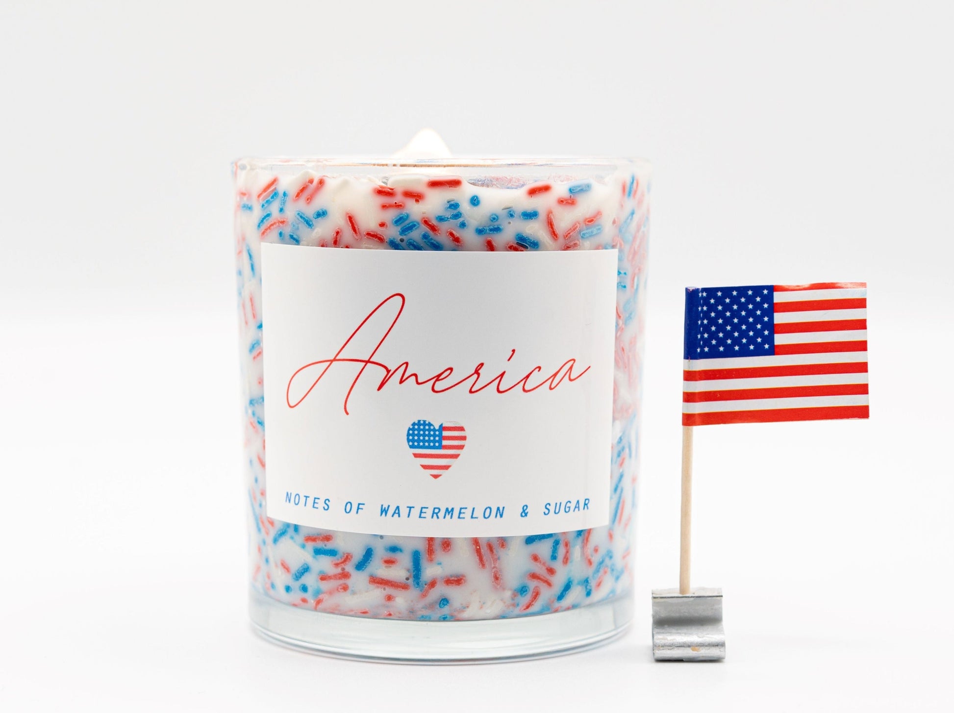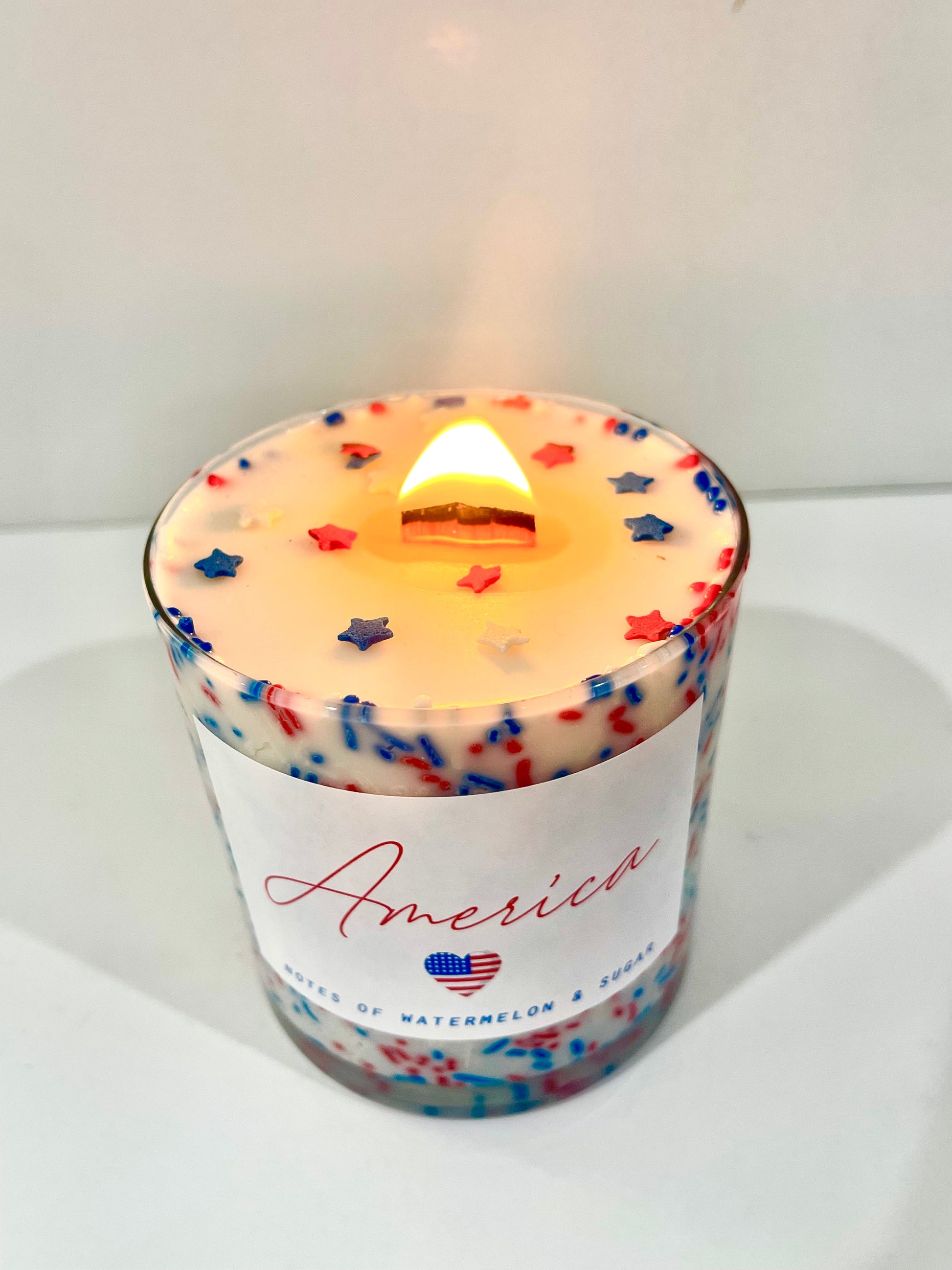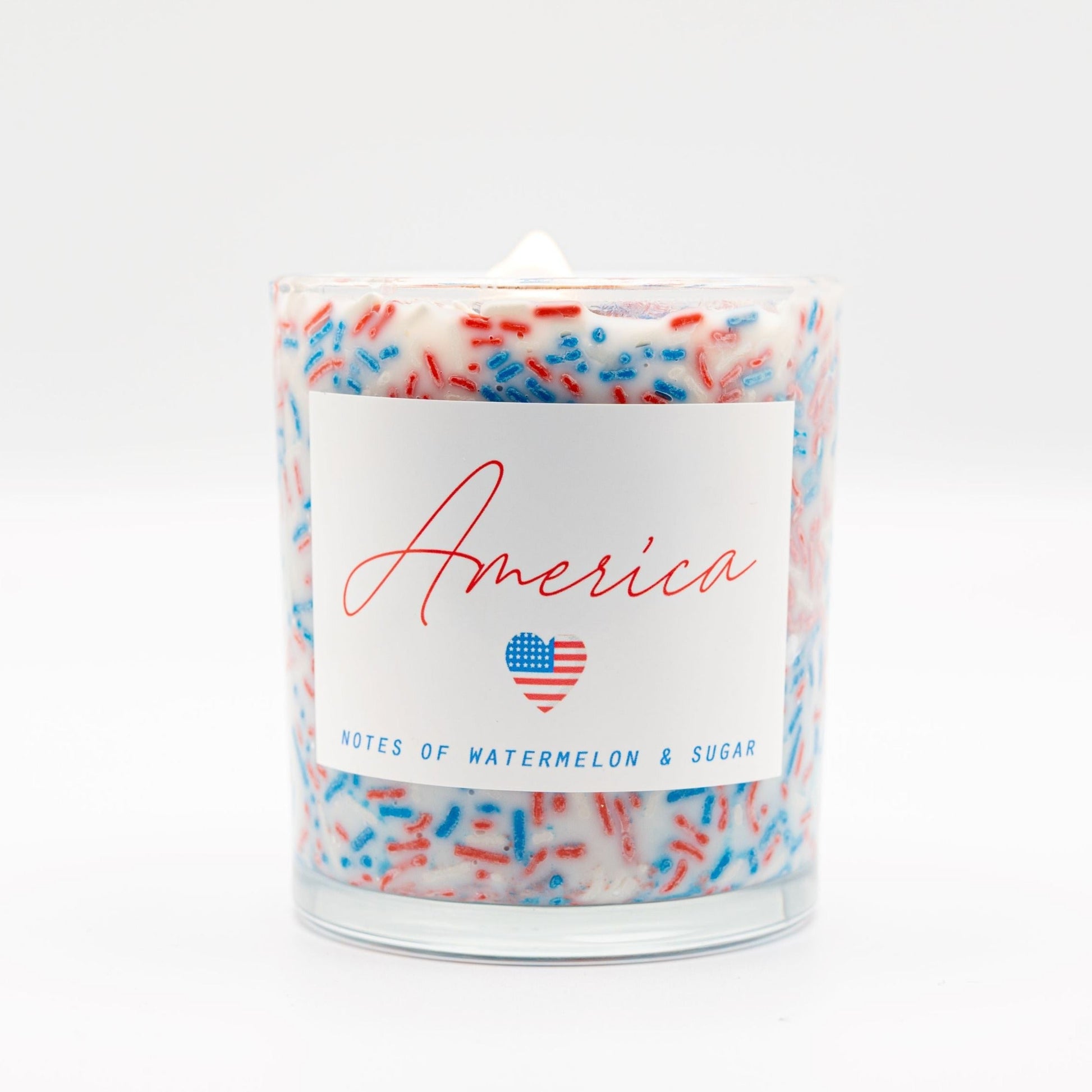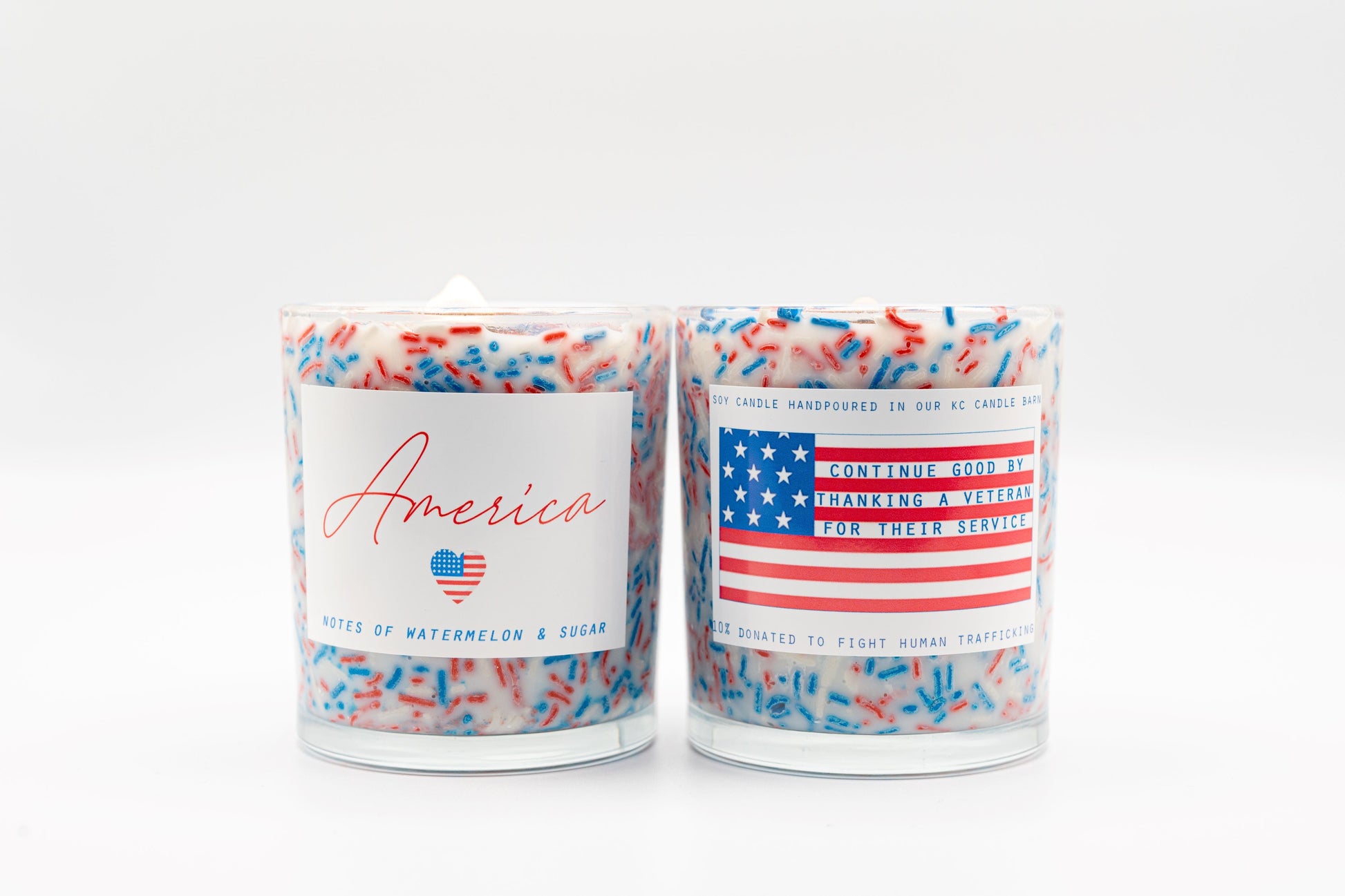 Our America candle is here! Land of the Free, Home of the Brave! We have so many reasons to be thankful for our country! There are lots of festive occasions for this candle to make your home patriotic or give to a loved one. We think that can make a great host gift for 4th of July! This candle has a bright & fruity watermelon scent with notes of honeydew and sugar to round out the sweetness. The back label reads 'continue good by thanking a veteran for their service.'