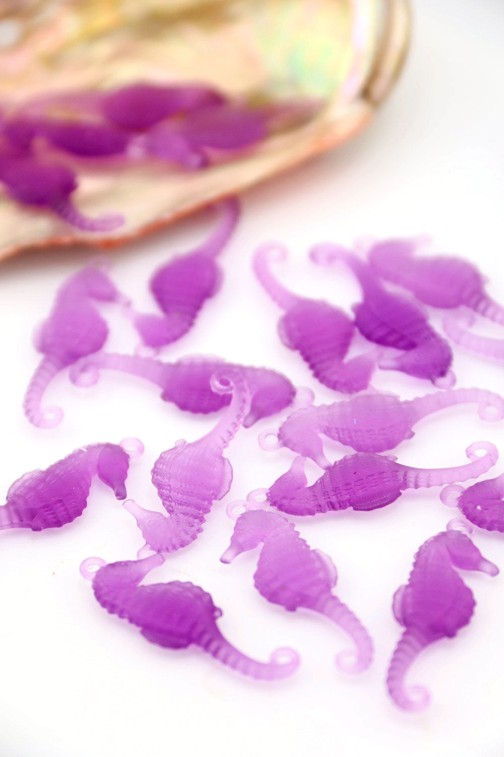 Embrace the fisher(wo)man aesthetic with these cute little seahorse charms. The details on these are beautifully intricate! 28mm of matte purple ocean vibes will add such a coastal feel to your jewelry creations. Wonderfully lightweight and high quality.