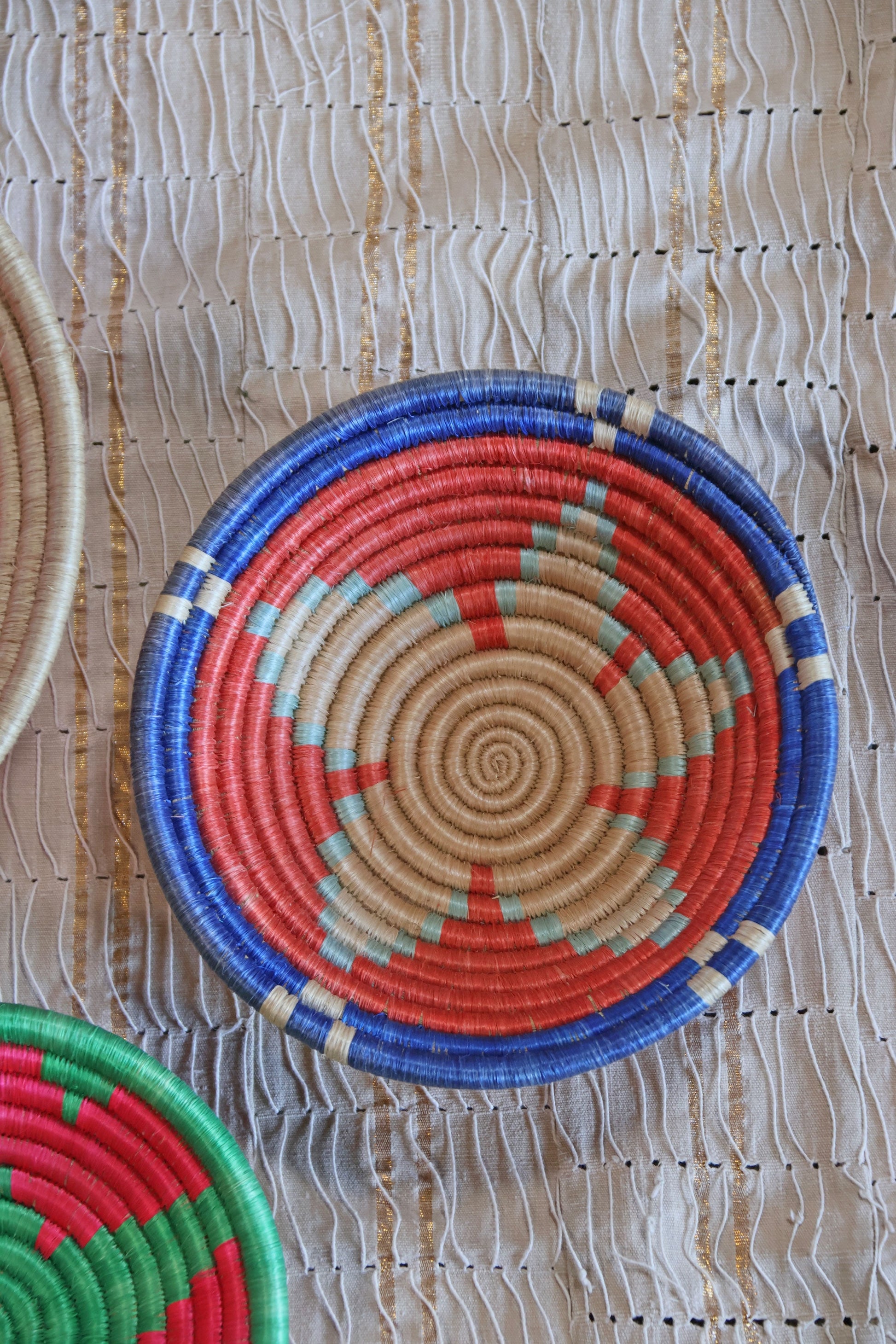 Add some pizzazz to a boring wall or tabletop with this curated and cohesive collection of pink, green, blue, and neutral African baskets. This colorful set makes it easy to create a global boho home. Handcrafted in Rwanda by women, from Sisal wrapped around native grasses, these vibrant baskets are not only beautiful, but widely functional too.