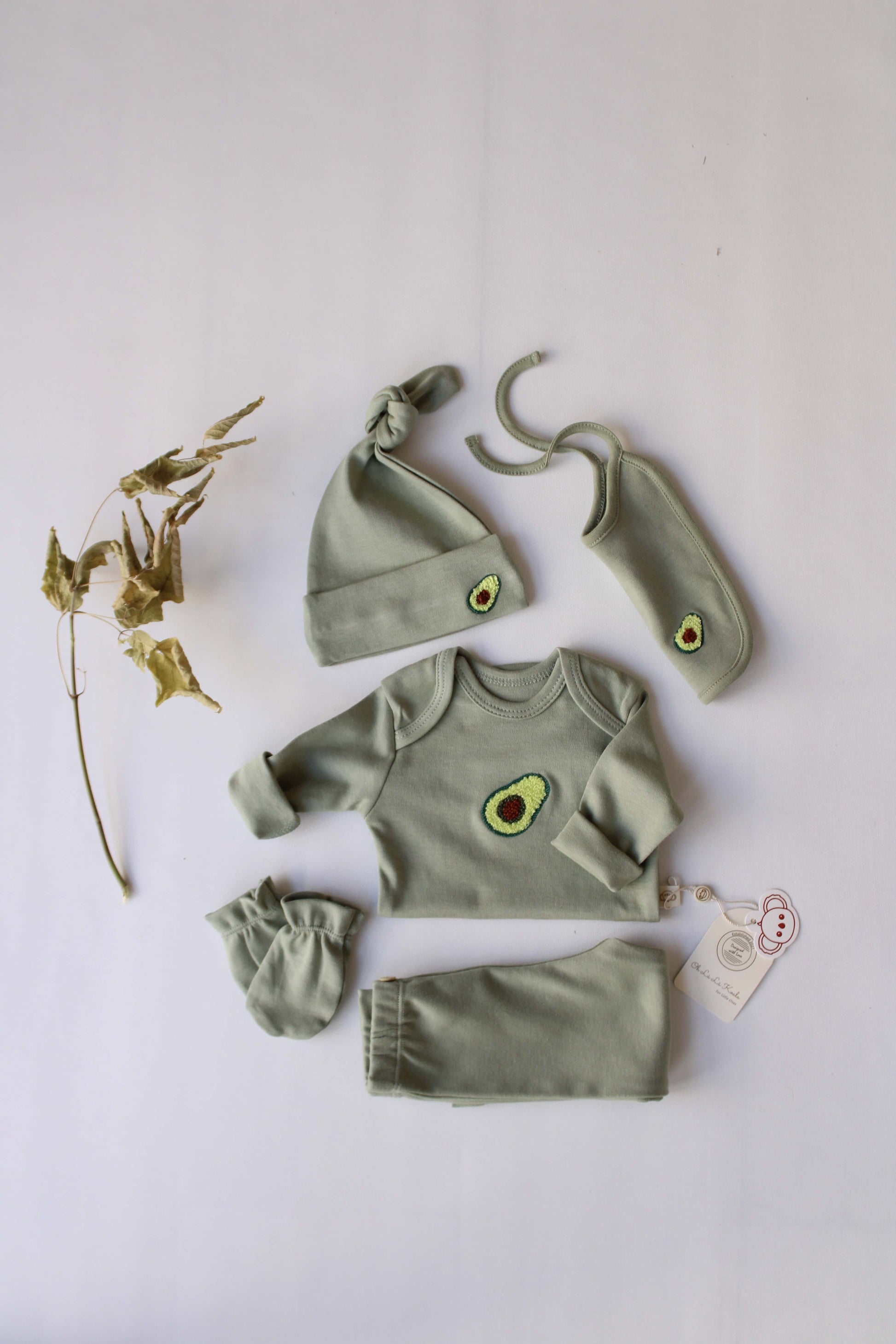Whether you’re celebrating a new arrival or searching for the perfect gift, our Avocado Patterned Newborn Set is a must-have for every parent. Embrace the cuteness and comfort of this delightful ensemble!