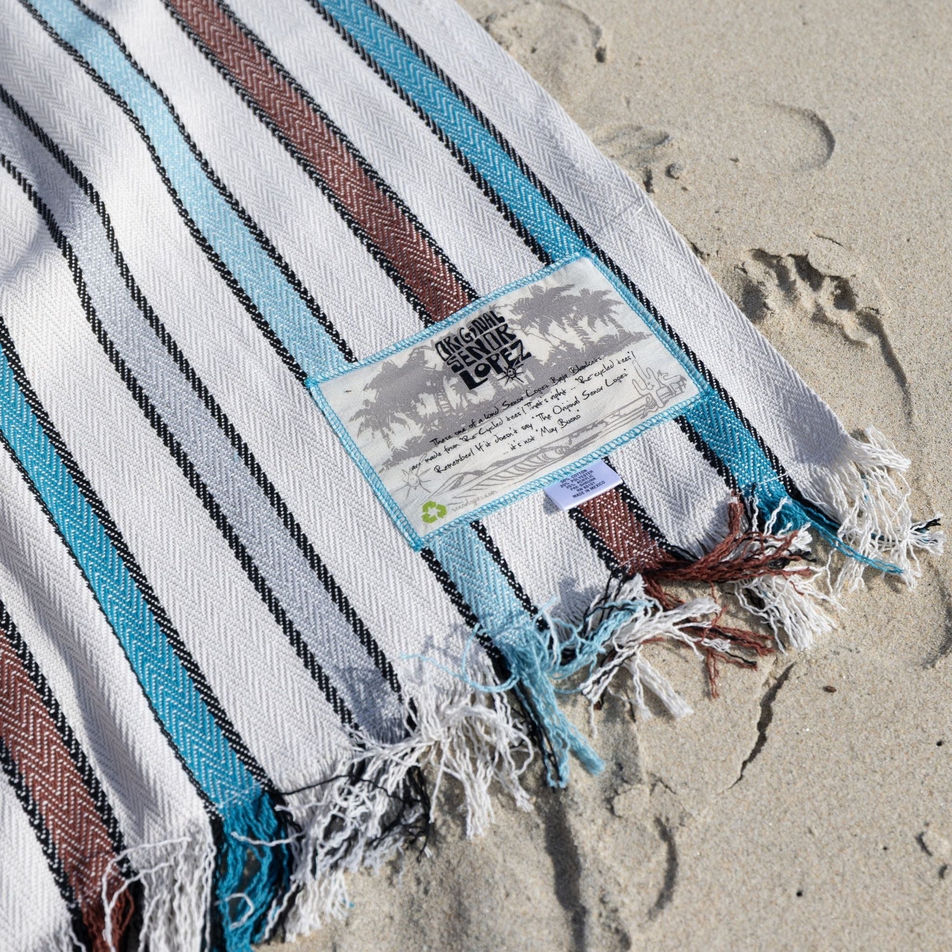 Our one-of-a-kind Señor Lopez beach blankets are made out of recycled t-shirts and, at 6ft x 4.5ft, are huge… so if you happen to find yourself in a sharing kind of mood, they’re easily large enough for 2 people!