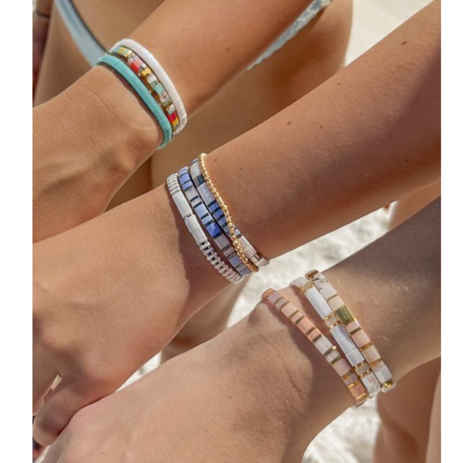 Tila Bracelets by Mack & Rex are NOT your typical beaded bracelets! We proudly back up our bracelets with a quality guarantee (yes, on stretchy bracelets!) and know that you will love them! They are made with an expensive crystal cord elastic, as well as glass tile beads from the top manufacture in Japan. In addition to being beautiful, our stretchy bead bracelets are: