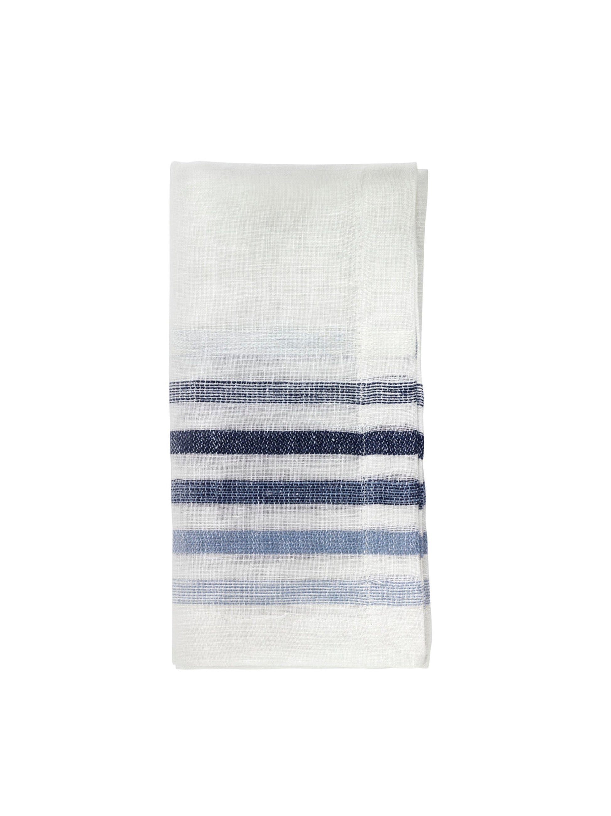 A 100% linen classic white with stripes napkin set or table runner for everyday extraordinary table setting.
