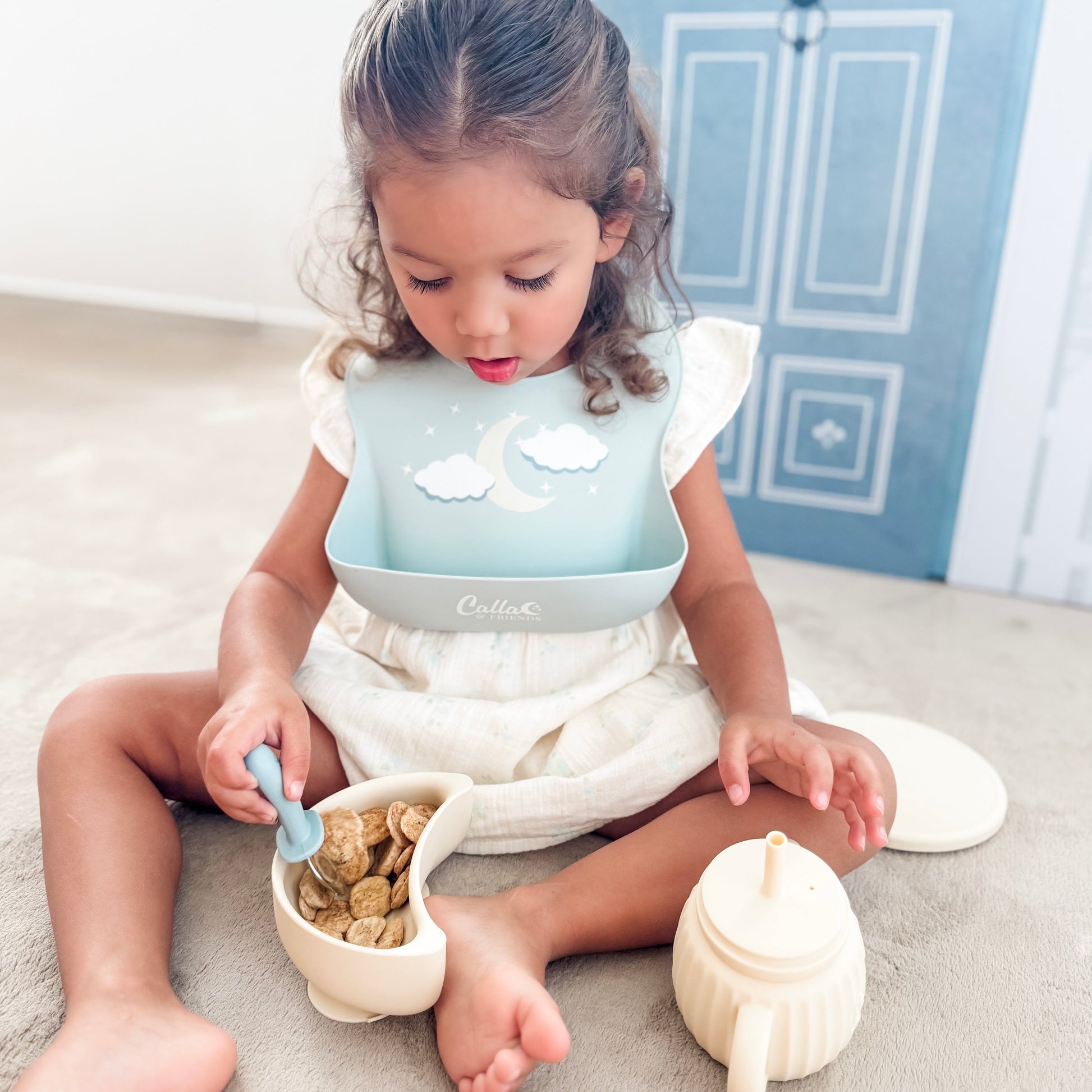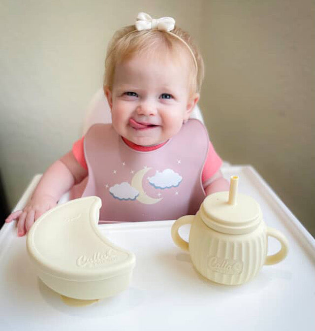 Our On Cloud 9 collection — created in collaboration with our beautiful friend Tess Annique Souray and her adorable kiddo Ollie — turns everyday meals into dreamy moments. With cloud-shaped plates, moon-inspired bowls, and both catch-all or Grayson bibs to match, every piece is designed for less mess and more smiles. Soft, safe, and oh-so-sweet — thoughtfully made for little ones (and the grownups who clean up after them).
