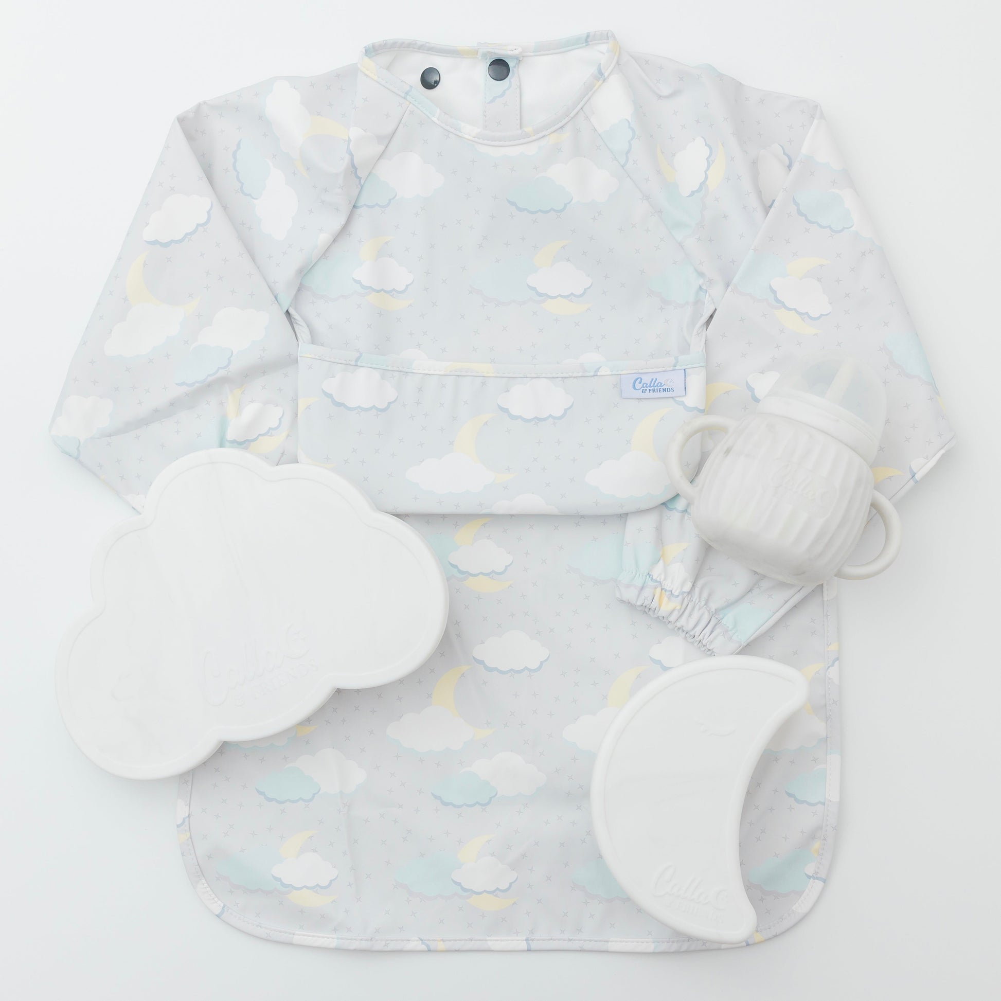 Our On Cloud 9 collection — created in collaboration with our beautiful friend Tess Annique Souray and her adorable kiddo Ollie — turns everyday meals into dreamy moments. With cloud-shaped plates, moon-inspired bowls, and both catch-all or Grayson bibs to match, every piece is designed for less mess and more smiles. Soft, safe, and oh-so-sweet — thoughtfully made for little ones (and the grownups who clean up after them).