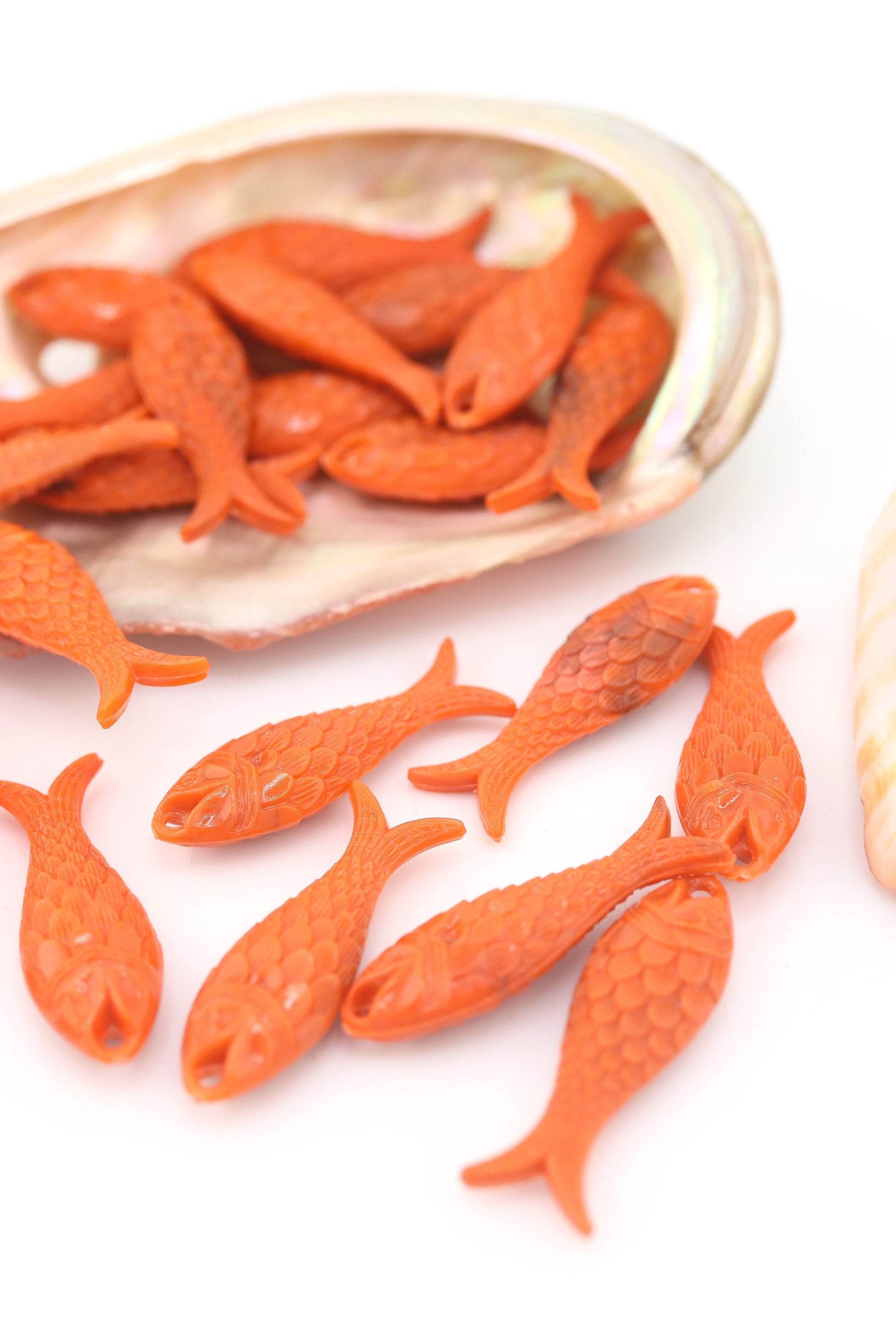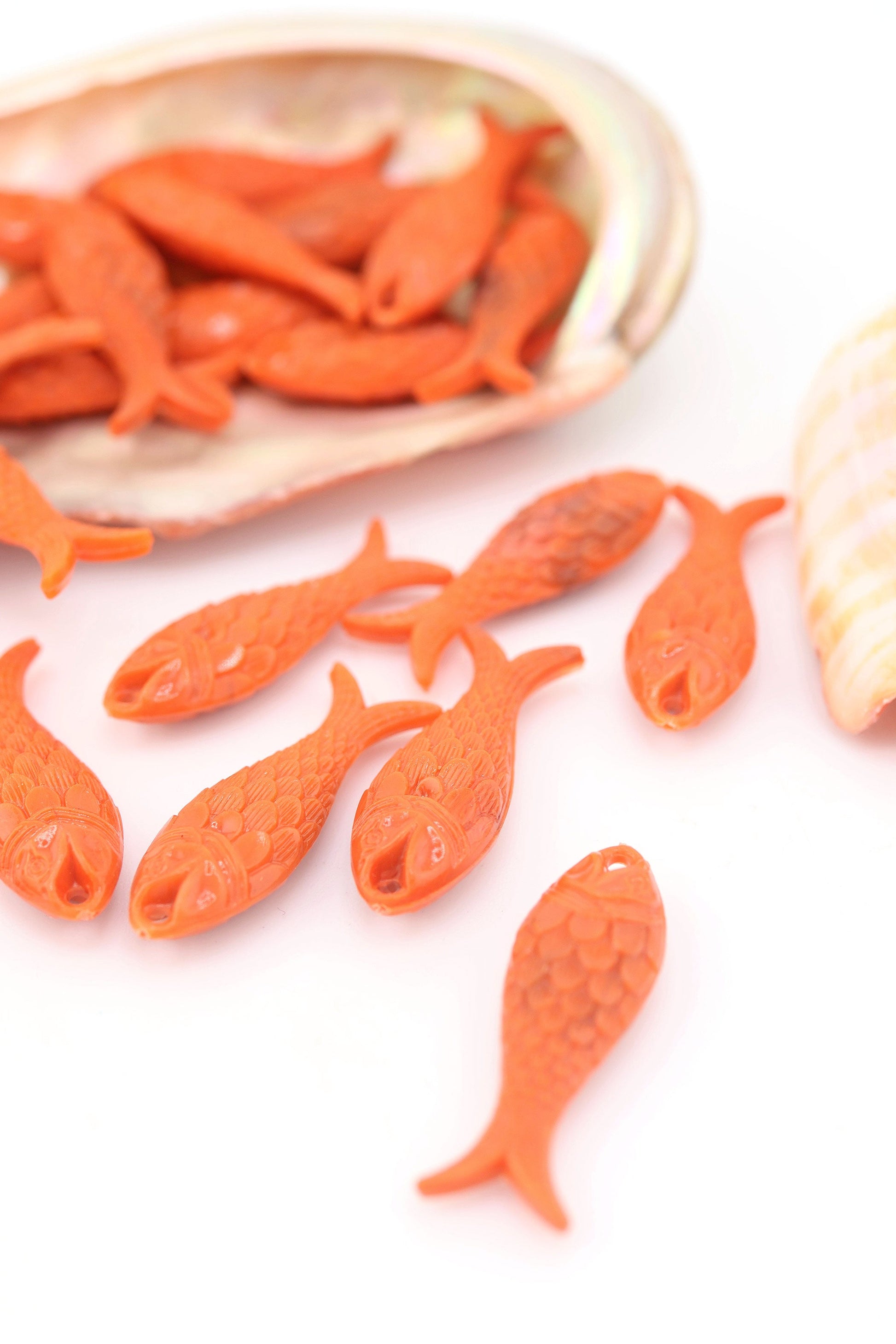 Coral Red Fish Charm, German Resin, 27mm, 1 Pendant