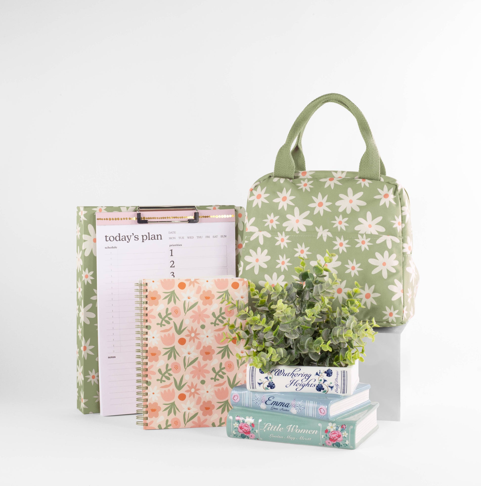 Perfect for your meal prep containers, drinks, and utensils, this lunch bag holds everything a girl needs for lunch on the go. It has a solid white interior lining that helps keep items fresh all day and is easy to clean after spills - just take a damp cloth and wipe the surface clean! Insulated lunch box features two carrying handles to easily transport it from class to work and back home again, while the insulated interior and zip close keep your items fresh all day.