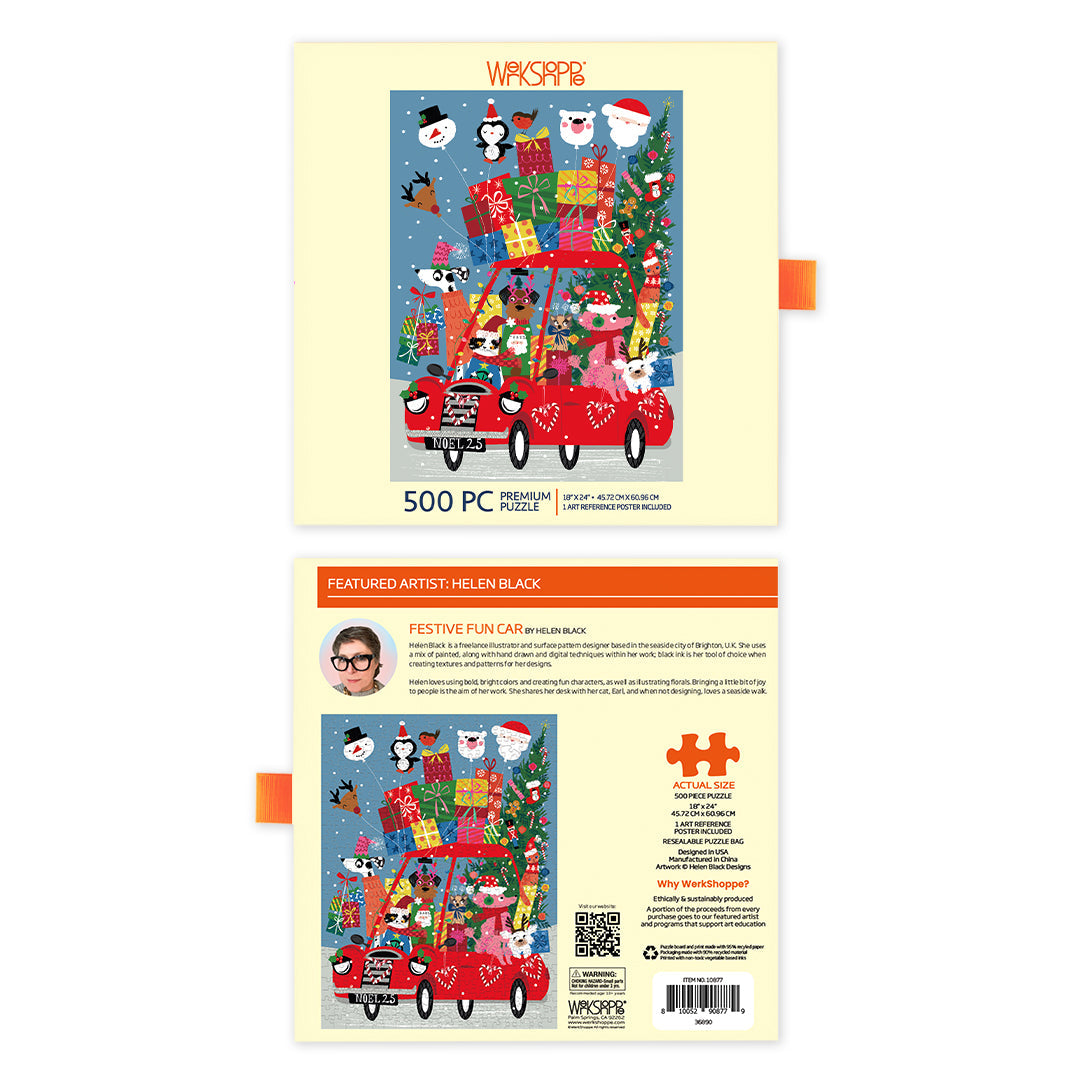 Buckle up for a joyful ride with the Festive Fun Car puzzle! This 500-piece holiday adventure features a cartoon car packed with playful cats and dogs, gifts stacked high on the roof, and plenty of festive charm to go around. With bright colors and whimsical details, it’s the perfect cozy activity to get you in the holiday spirit—whether you're puzzling solo or sharing the fun with friends and family.