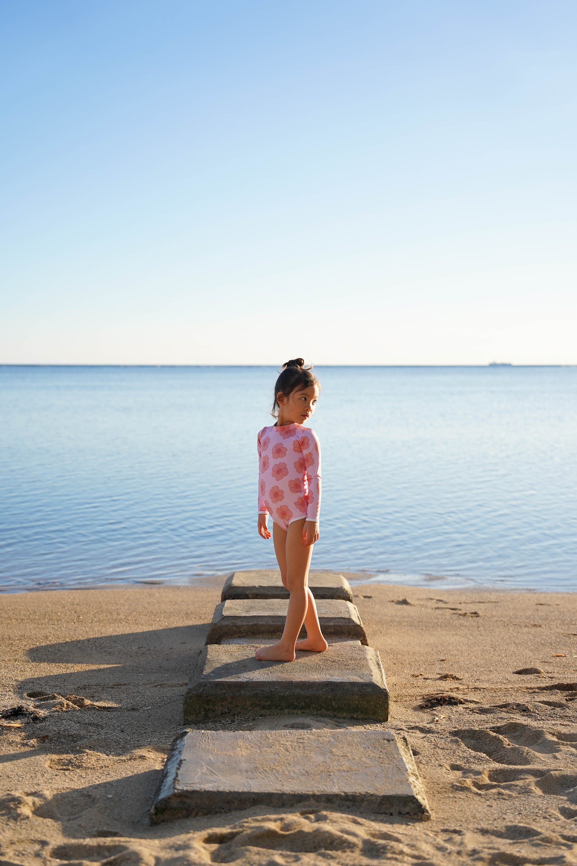 Bring on the sunshine with our new long sleeve girls one-piece swimsuit, designed with UPF 50+ protection and inspired by our home state of Hawaii and its endless summer.
