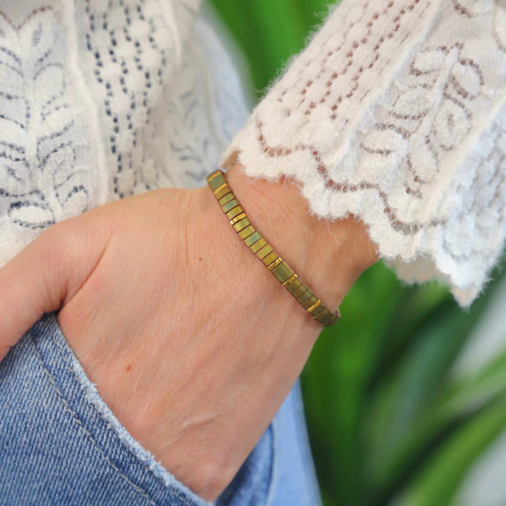 Tila Bracelets by Mack & Rex are NOT your typical beaded bracelets! We proudly back up our bracelets with a quality guarantee (yes, on stretchy bracelets!) and know that you will love them! They are made with an expensive crystal cord elastic, as well as glass tile beads from the top manufacture in Japan. In addition to being beautiful, our stretchy bead bracelets are: