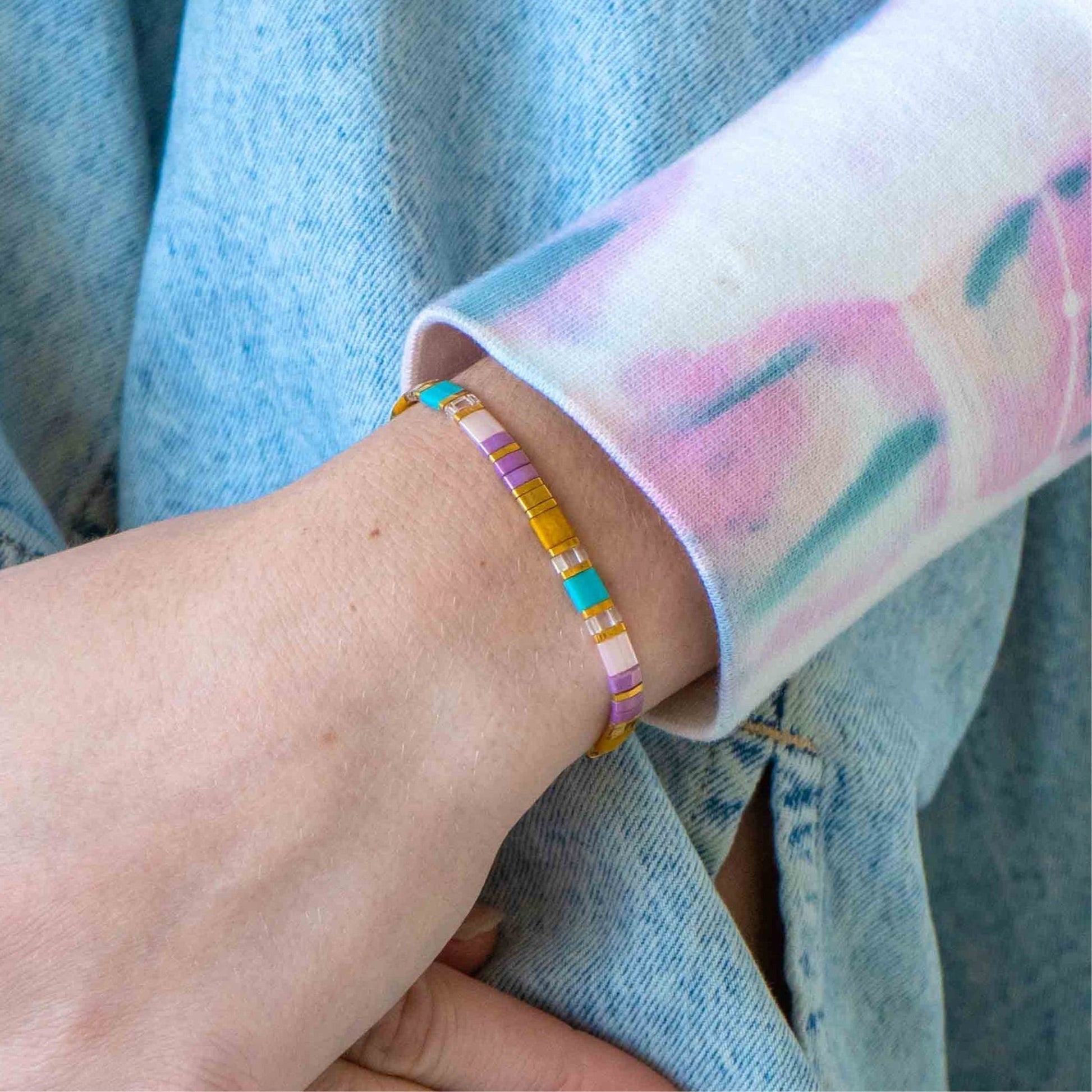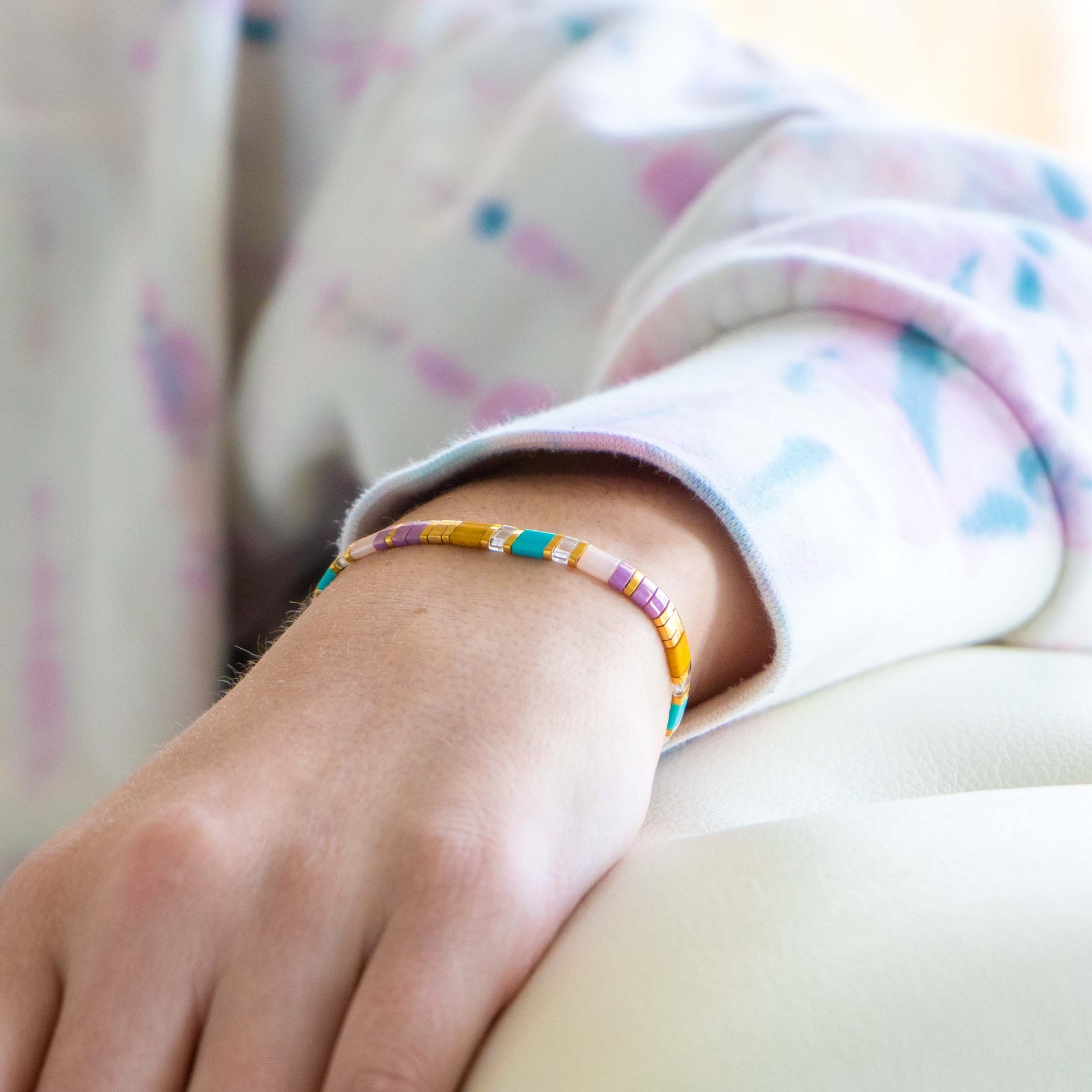 Tila Bracelets by Mack & Rex are NOT your typical beaded bracelets! We proudly back up our bracelets with a quality guarantee (yes, on stretchy bracelets!) and know that you will love them! They are made with an expensive crystal cord elastic, as well as glass tile beads from the top manufacture in Japan. In addition to being beautiful, our stretchy bead bracelets are: