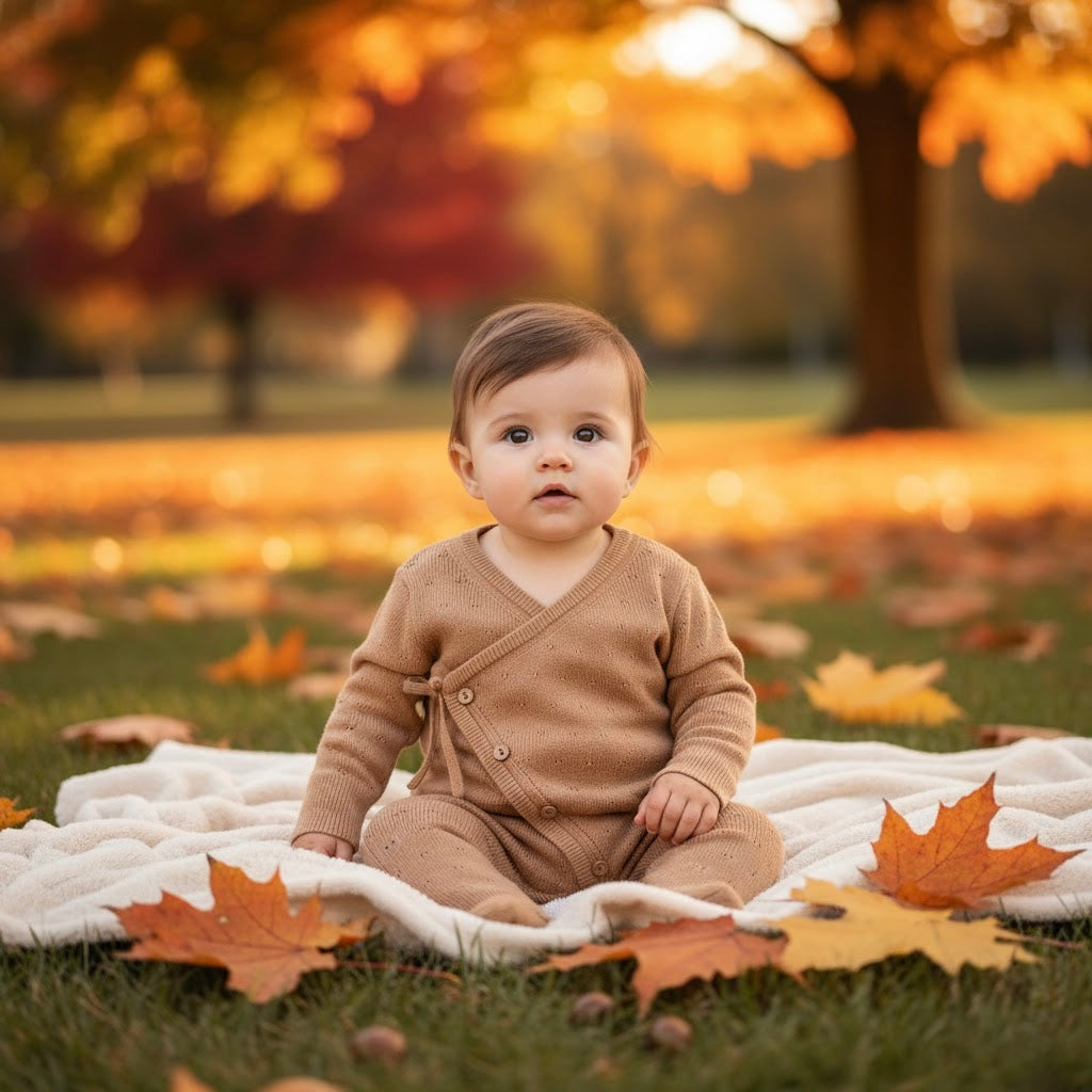 Wrap your little one in pure softness with our GOTS certified organic cotton knit kimono. Thoughtfully designed with a ventilated design for all-day comfort, this kimono is perfect for sensitive baby skin. The easy-tie closure makes dressing quick and fuss-free, while four decorative buttons add a charming touch—no buttoning needed! Lightweight, gentle, and beautifully made, it’s a cozy essential for lounging, napping, or layering through the seasons
