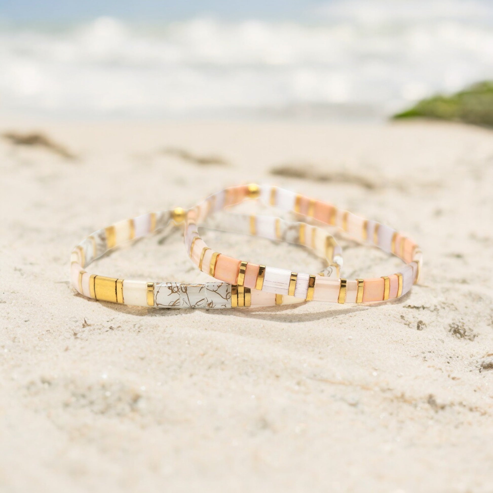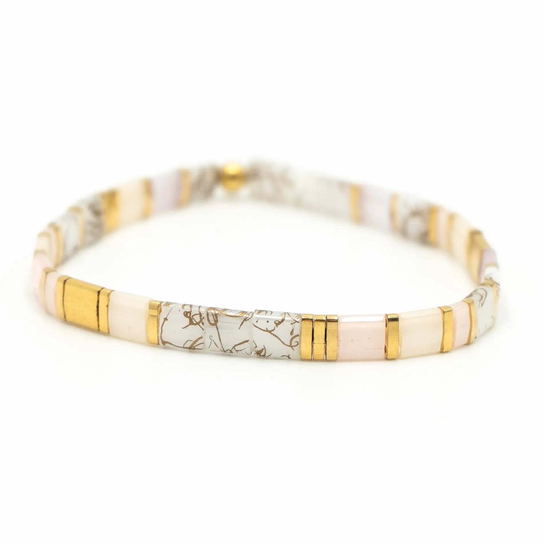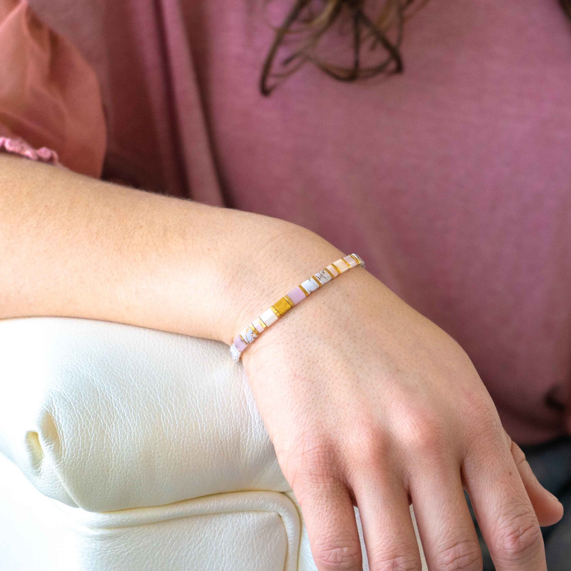 Tila Bracelets by Mack & Rex are NOT your typical beaded bracelets! We proudly back up our bracelets with a quality guarantee (yes, on stretchy bracelets!) and know that you will love them! They are made with an expensive crystal cord elastic, as well as glass tile beads from the top manufacture in Japan. In addition to being beautiful, our stretchy bead bracelets are: