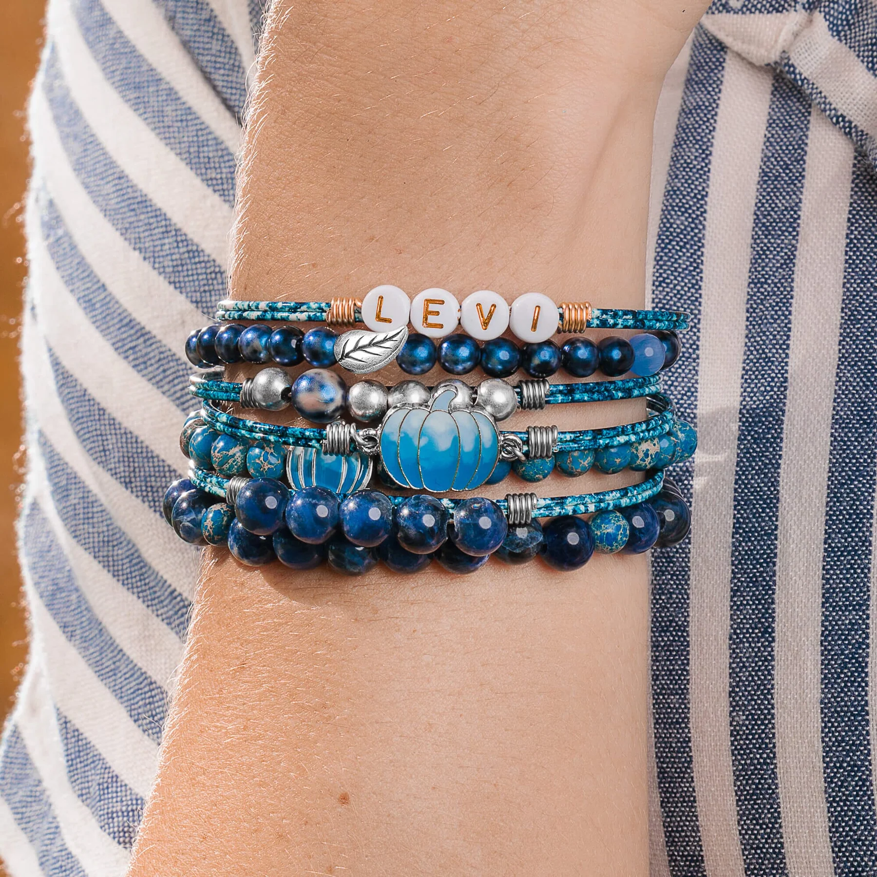 Discover the magic and whimsy of autumn with the Denim Splatter Pumpkin Bangle Bracelet! It's denim-inspired design looks great with your favorite jeans, denim jacket and is ready for you to embrace the season! This bracelet features a Denim Splatter Bangle and a Denim Ombre Pumpkin Charm in Imitation Rhodium plated finish.