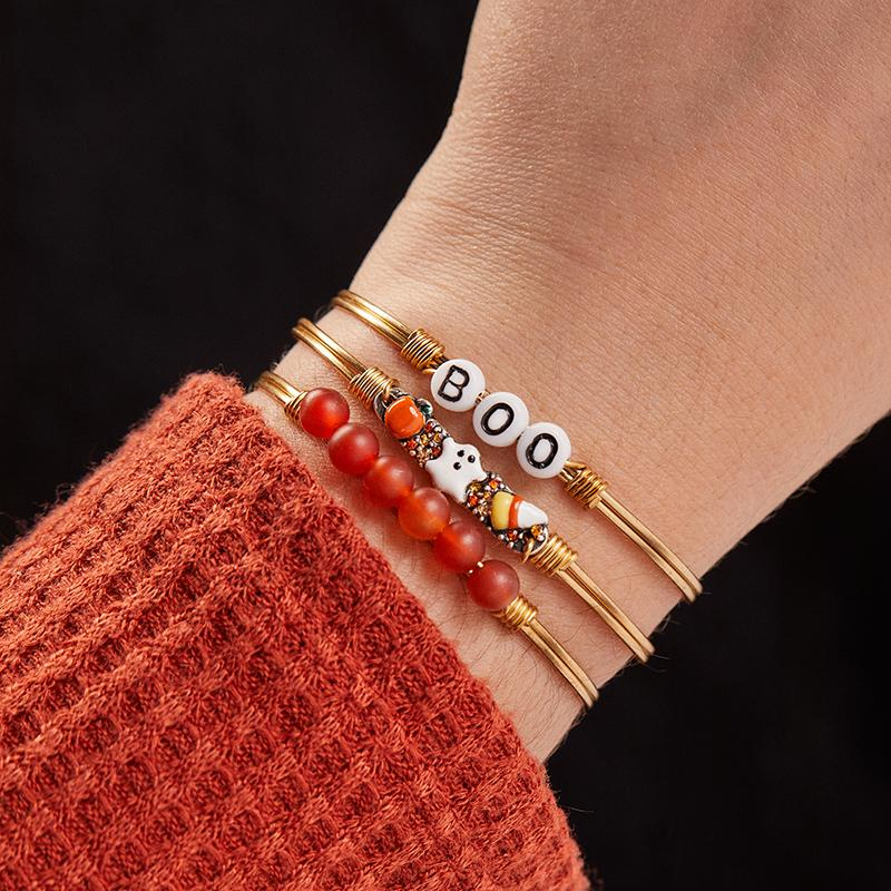 Pumpkin! Ghost! Candy Corn! No need to choose which bracelet to wear when you have our Halloween Medley Bangle Bracelet. You can wear and enjoy them all at once!