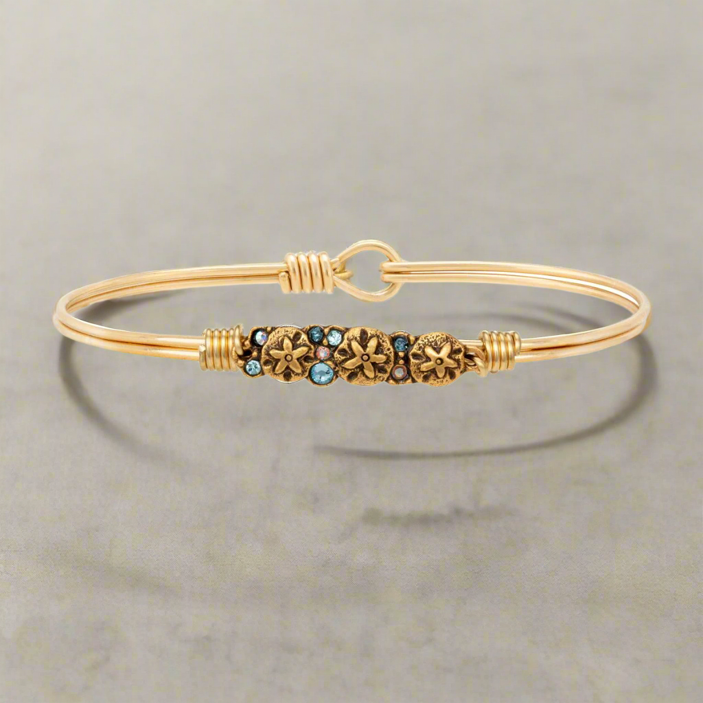 - Accented with crystals featuring Montana Blue, Aquamarine + Aurora Borealis