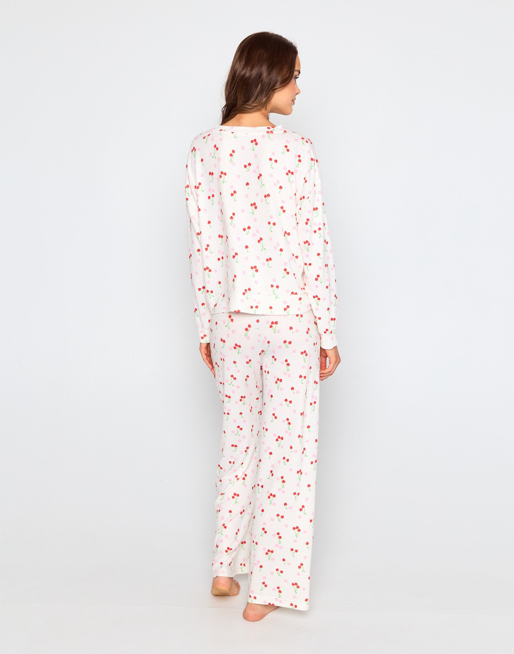 Wrap yourself in comfort with this cozy cherry-printed long sleeve top. Designed with a relaxed fit and soft knit fabric, it’s the perfect blend of cute and comfy. The playful cherry print adds a sweet twist to your nighttime routine or laid-back lounge days.