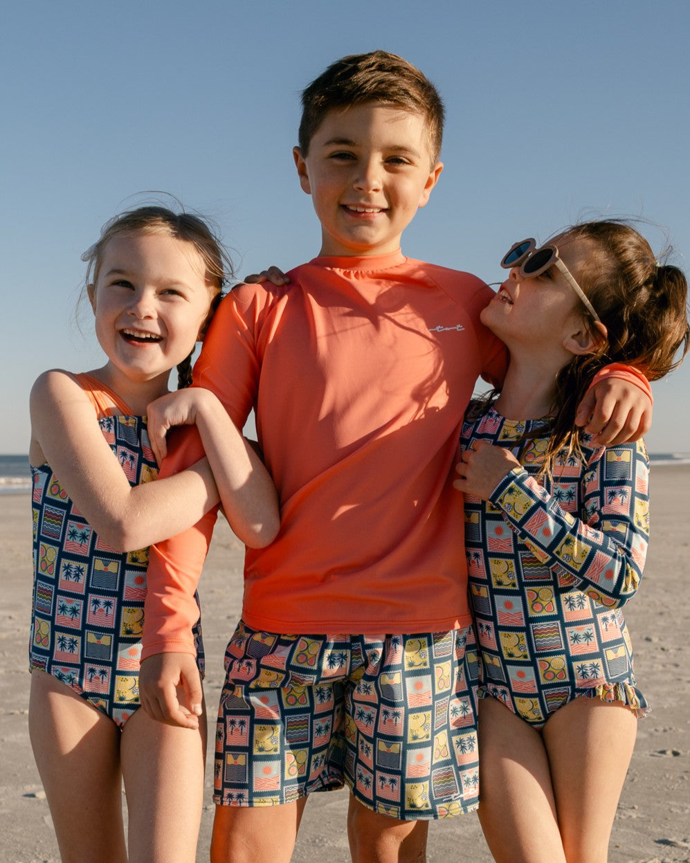 Your cutie will be ready for the beach in this classic Melon long sleeve UPF 50+ sun shirt. Watermelon swim trunks sold separately. Proudly made in the USA.