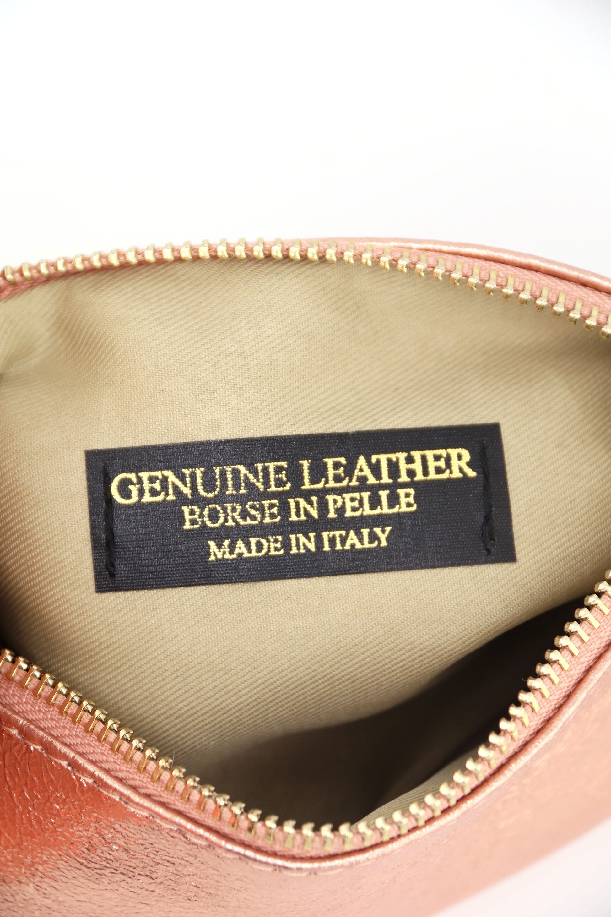 Midi Metallic Italian Leather Zipper Pouch, Purse, 7.5" Soft Real Leather, Assorted Colors