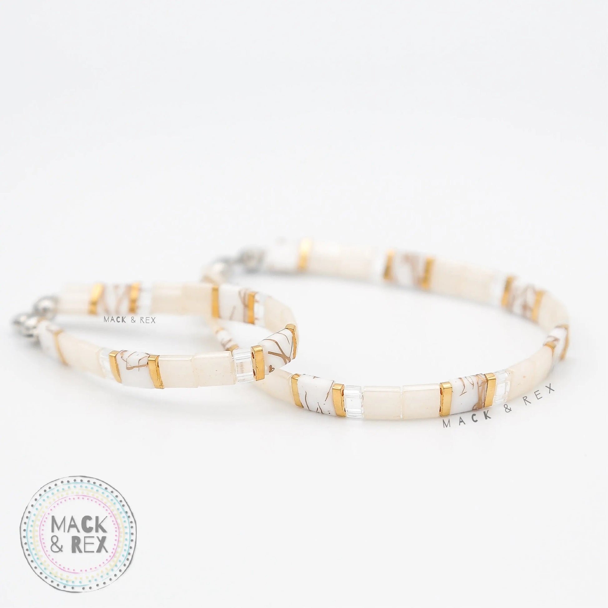 Tila Bracelets by Mack & Rex are NOT your typical beaded bracelets! We proudly back up our bracelets with a quality guarantee (yes, on stretchy bracelets!) and know that you will love them! They are made with an expensive crystal cord elastic, as well as glass tile beads from the top manufacture in Japan. In addition to being beautiful, our stretchy bead bracelets are: