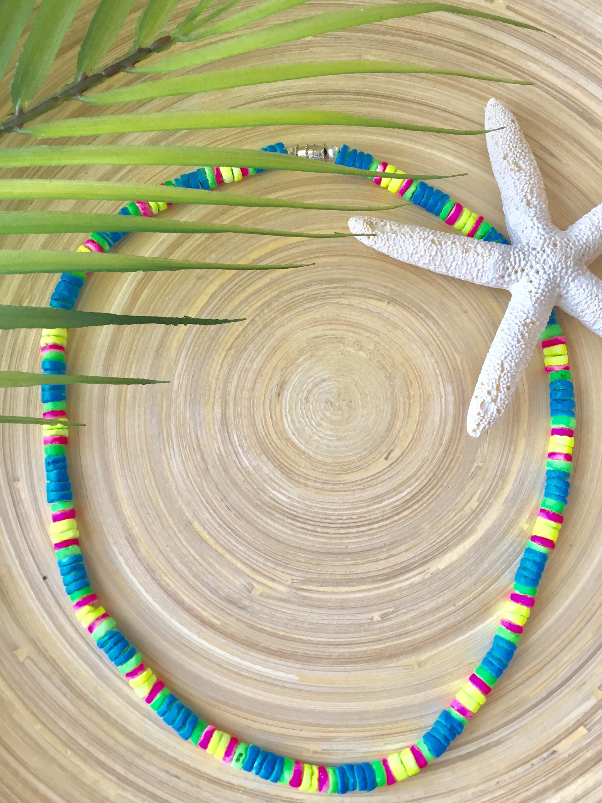 Neon Heishi Bead Necklace 18" (Blue/Lime/Pink/Yellow)