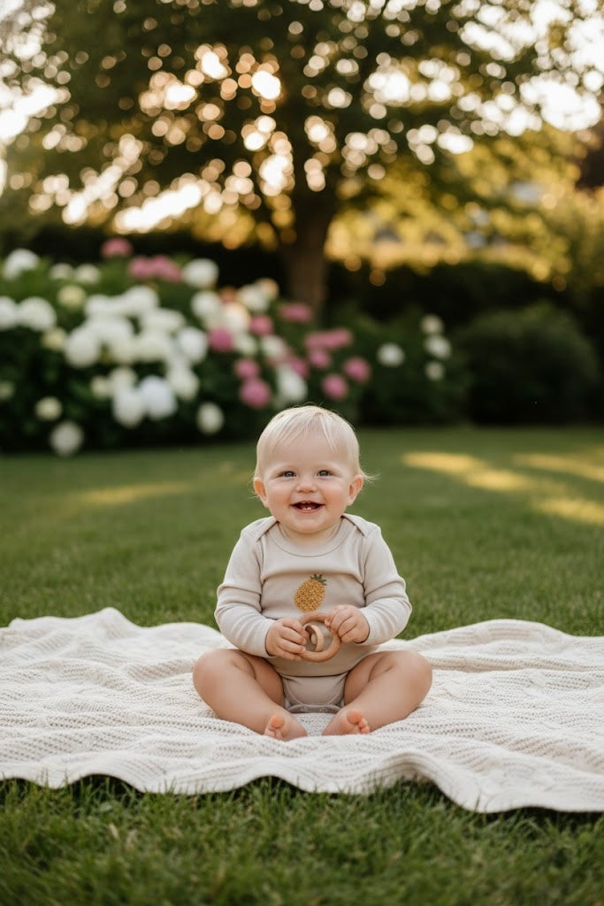 Add a tropical flair to your baby’s wardrobe with our Pineapple Patterned Long Sleeve Bodysuit. Crafted from soft, breathable fabric, this bodysuit keeps your little one cozy and comfortable throughout the day. The cheerful pineapple design brings a fun and playful vibe, perfect for any adventure.